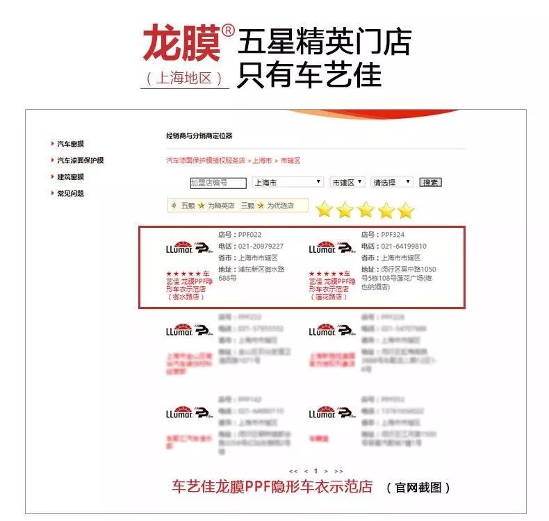 车艺尚旗下车艺佳贴膜部分门店展示