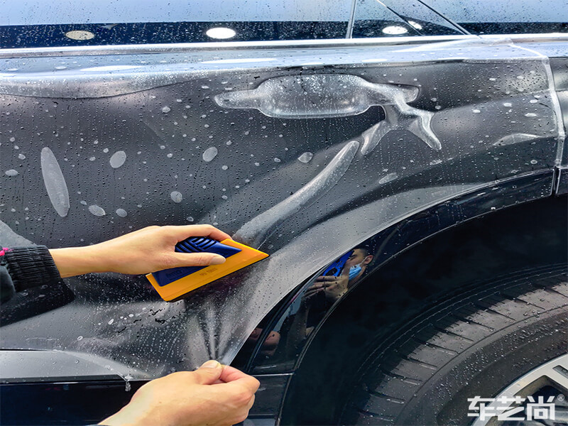 车艺尚拥有更精准的包边预留设计,电脑裁剪,匹配车身的每一个弧度,隐形车衣装贴过程中,不拆装不动刀无划痕。