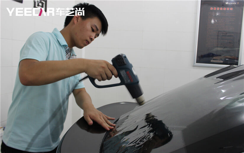 ● 烤膜是一项技术活,烤膜过程中必须使膜受热均匀(烤膜如果受热不均可能会使挡风玻璃炸裂,所以只有专业的熟练技师才能完美施工)