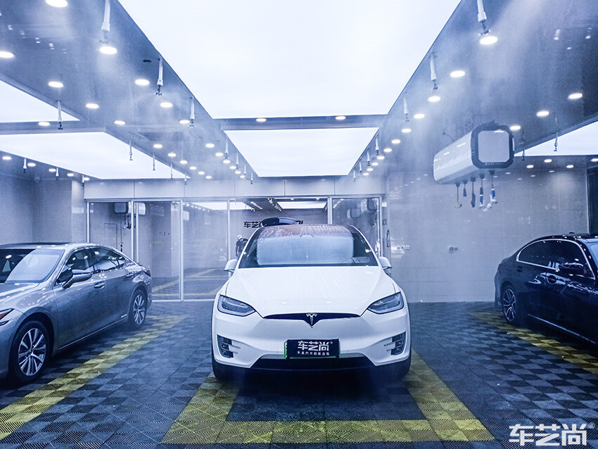 汽车贴膜前需要最大限度的确保空气和车身的洁净无尘,避免贴膜后有灰尘杂质夹杂其中。车艺尚配备大型喷淋除尘系统,施工前雾化空气,模拟雨天的空气湿度,可以达到理想的贴膜环境。