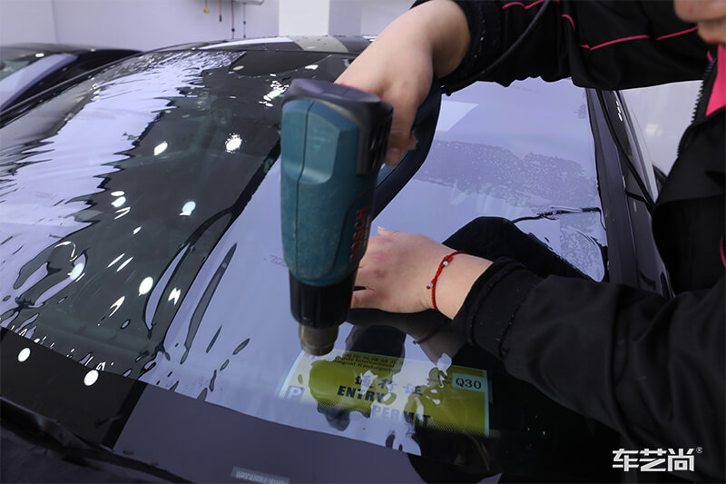 烘烤定型中,温度过高或过低都不行,这就既需要恒温的烤枪,又需要技师的手法,烘烤的距离、时长,都影响着膜的延展度。不专业的烘烤操作很容易烤伤车膜,甚至是爱车的玻璃。