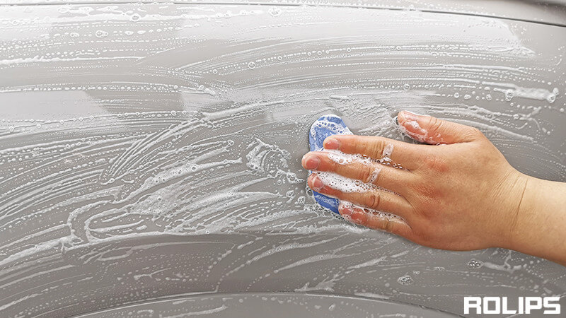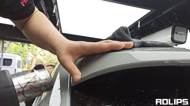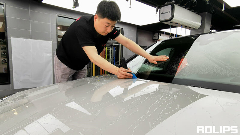 ROLIPS要求在隐形车衣施工前,对车辆进行彻底的清洁,不放过任何一个缝隙死角,保持漆面的洁净,确保贴膜后无尘点。