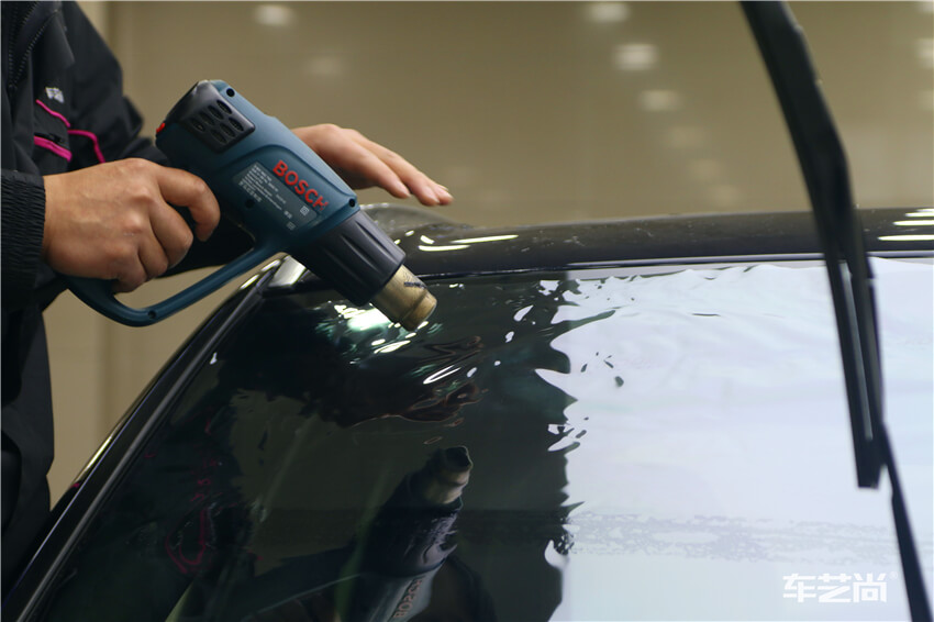 烘烤定型中,温度过高或过低都不行,这就既需要恒温的烤枪,又需要技师的手法,烘烤的距离、时长,都影响着膜的延展度。不专业的烘烤操作很容易烤伤车膜,甚至是爱车的玻璃。