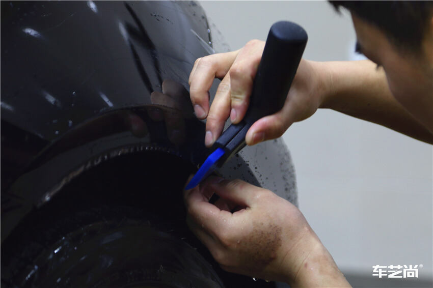 车艺尚拥有更精准的包边预留设计,电脑裁剪,匹配车身的每一个弧度,隐形车衣装贴过程中,不拆装不动刀无划痕。