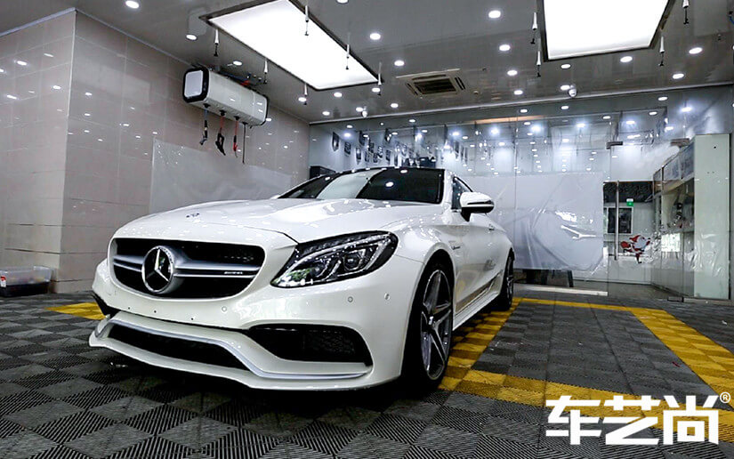白色奔驰C63选择艺卡贴膜施工威固漆面保护膜