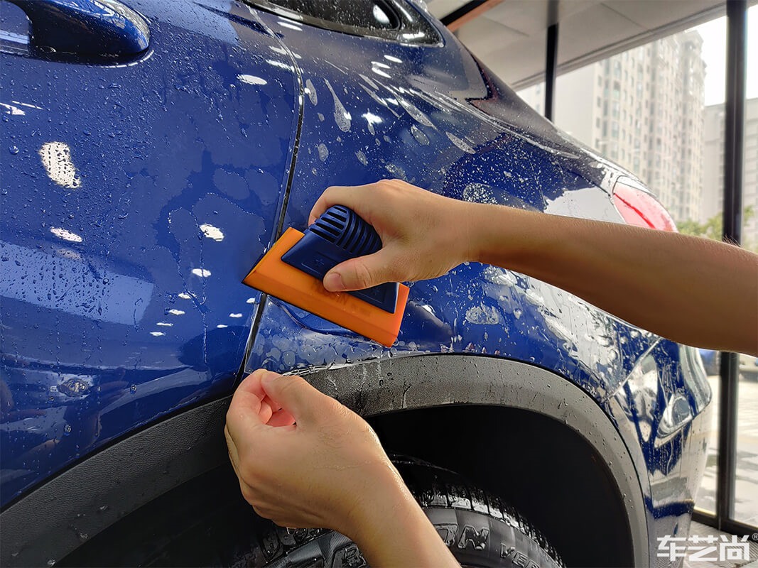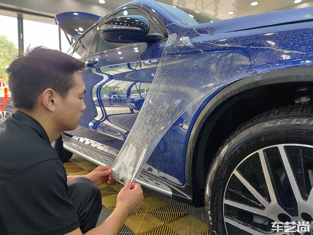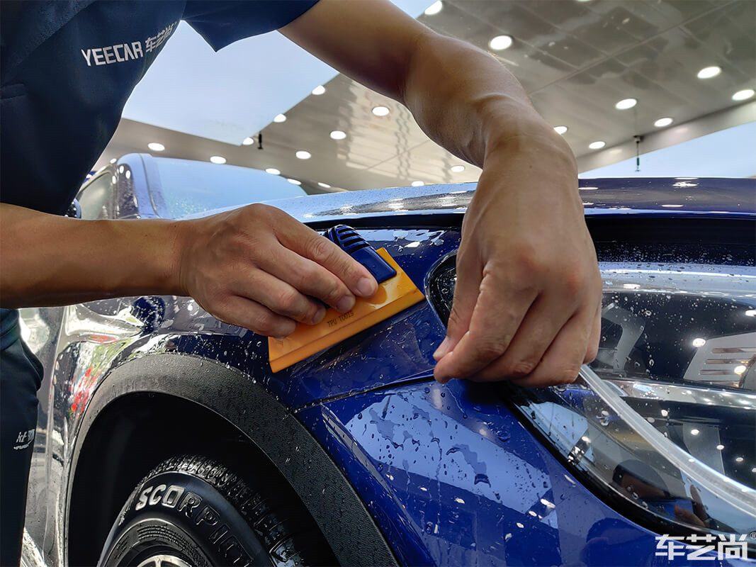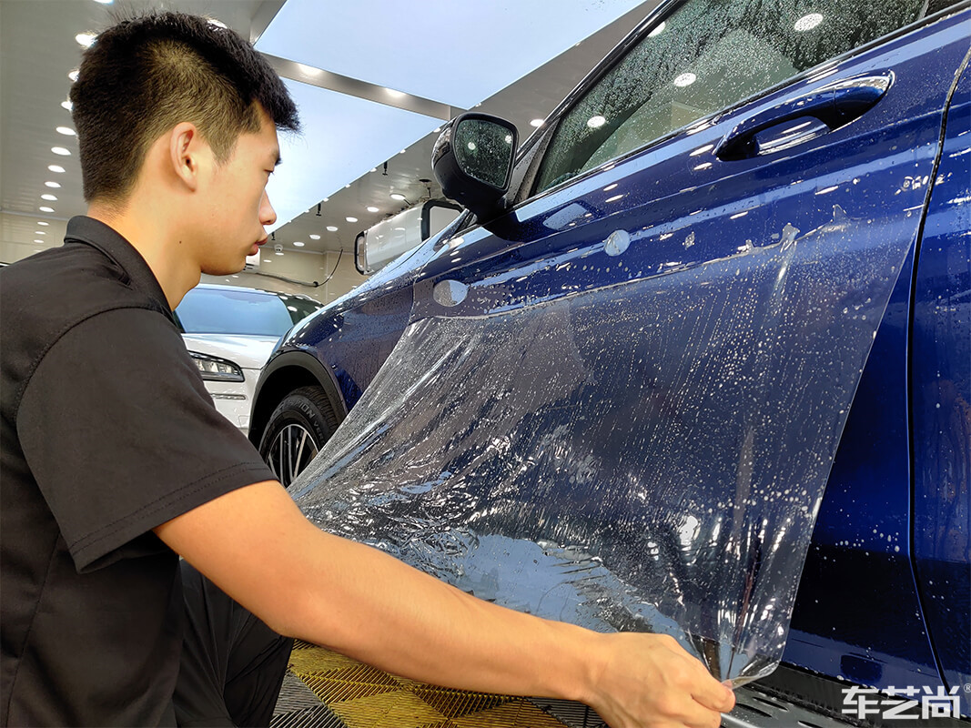 车艺尚拥有更精准的包边预留设计,电脑裁剪,匹配车身的每一个弧度,隐形车衣装贴过程中,不拆装不动刀无划痕。