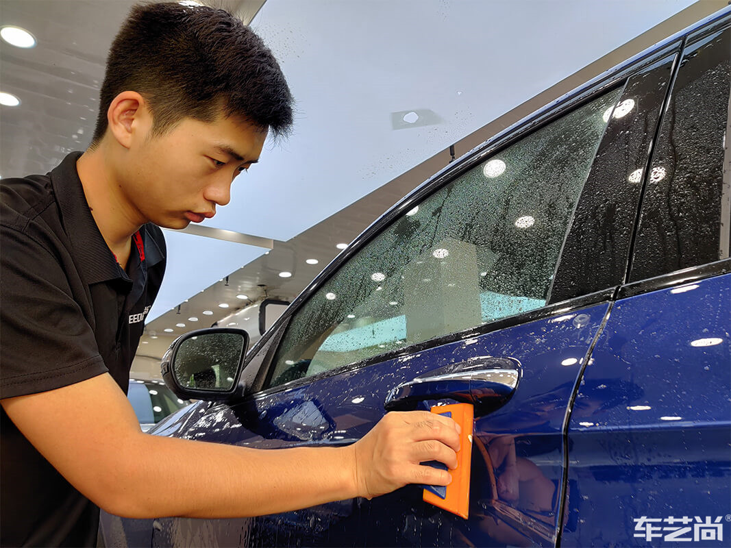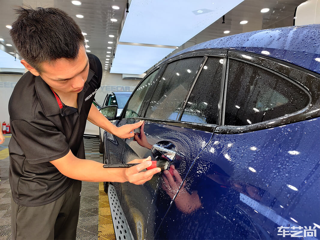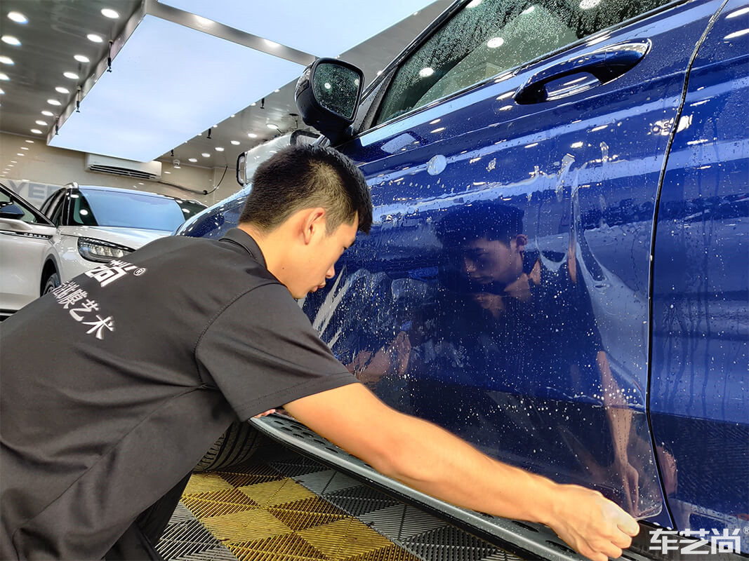 车艺尚汽车贴膜在隐形车衣施工前,会对车辆进行彻底的清洁,不放过任何一个缝隙死角,保持漆面的洁净,确保贴膜后无尘点。