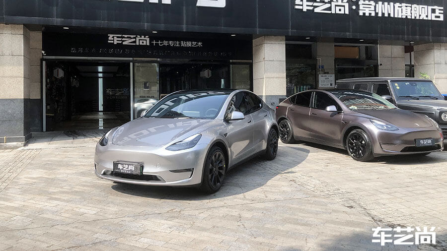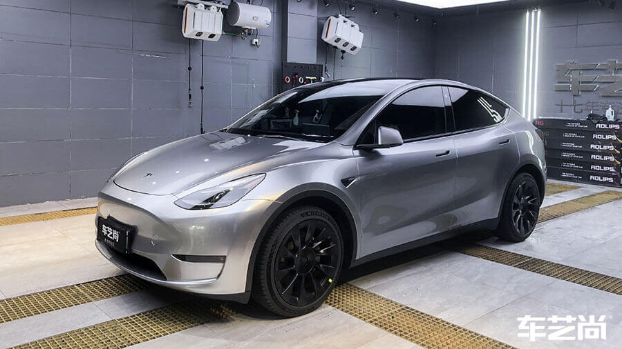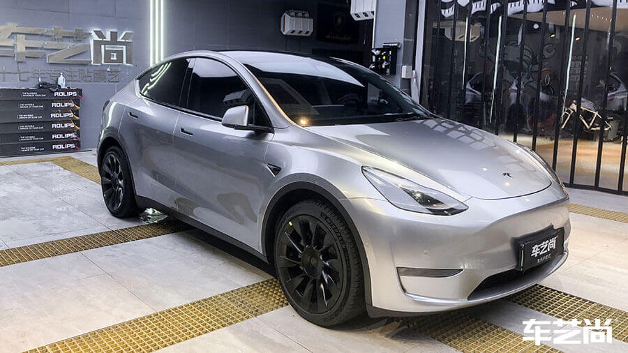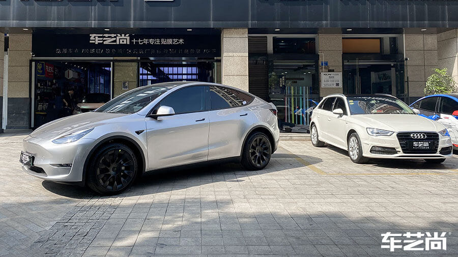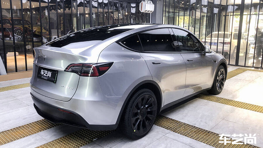 特斯拉modelY黑色施工车身改色膜AX—GT银案例