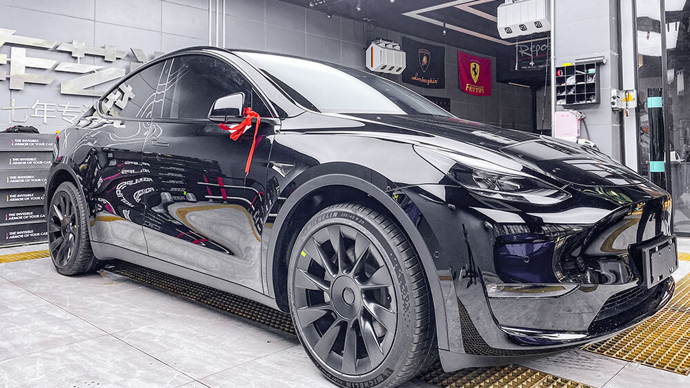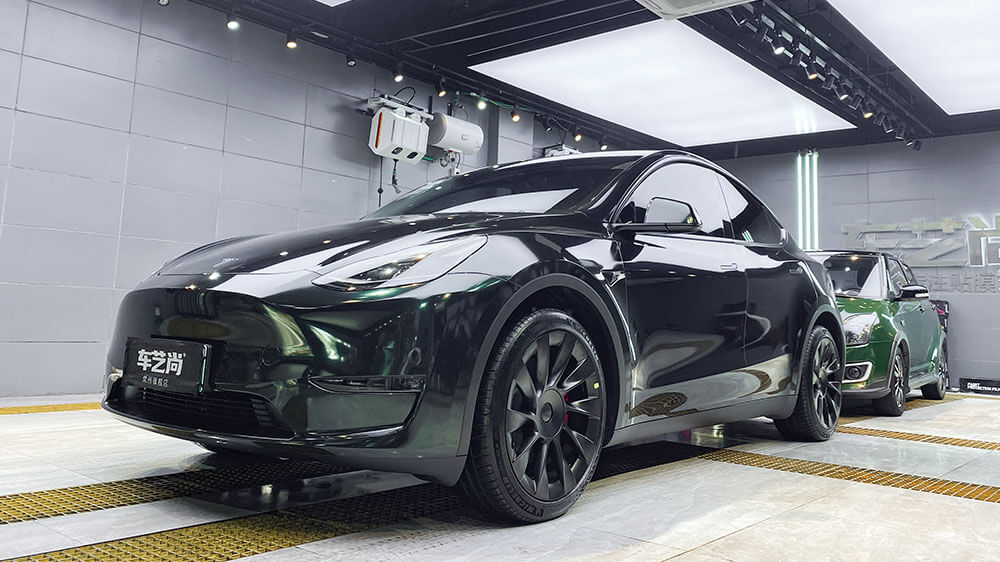 特斯拉MODEL-Y黑色施工AX祖母石绿+龙膜畅悦80前档案例