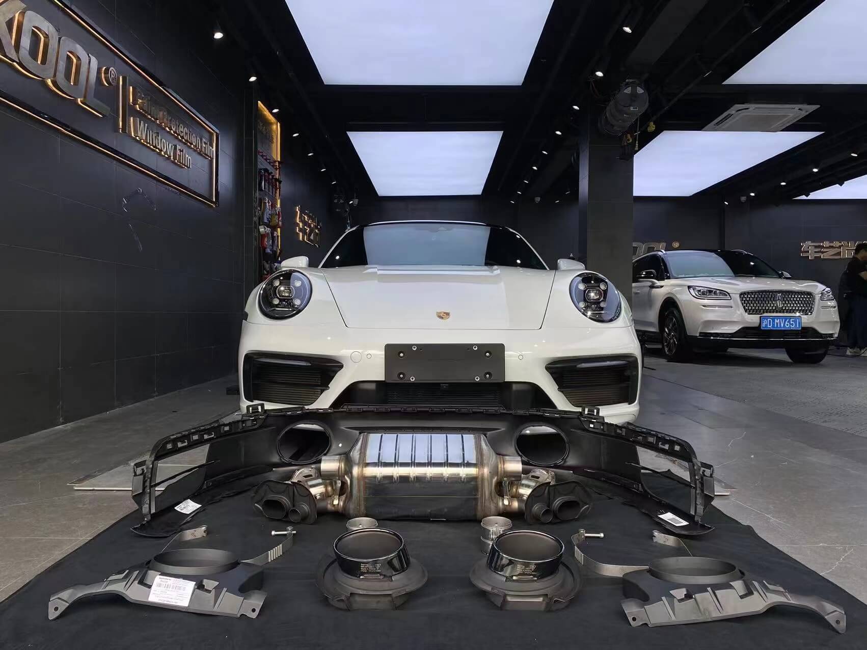 保时捷911改992原厂运动排气,所需要的配件,排气和后唇
