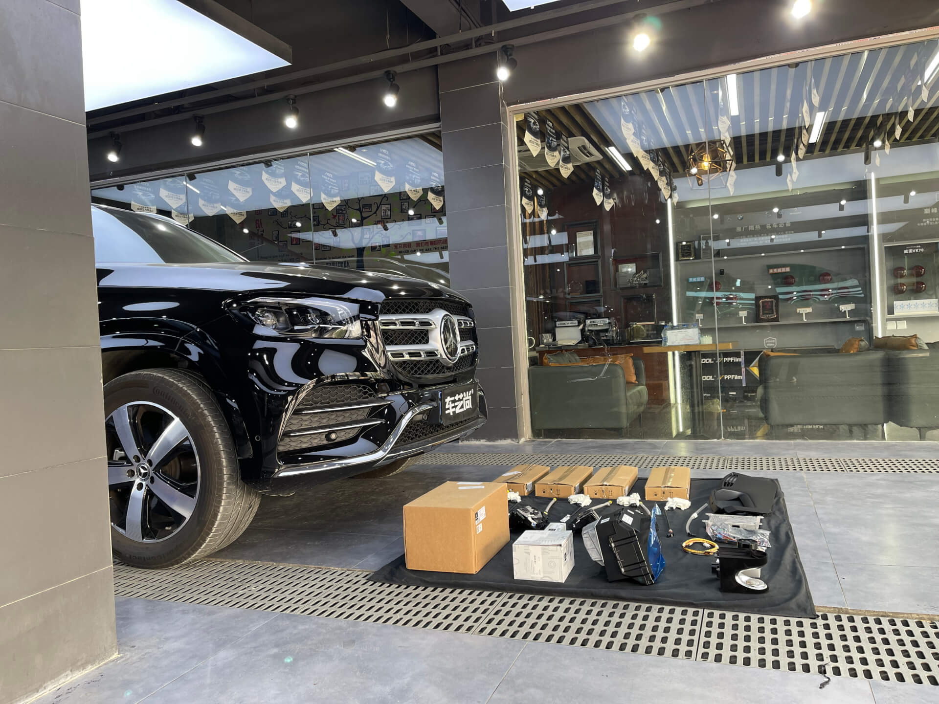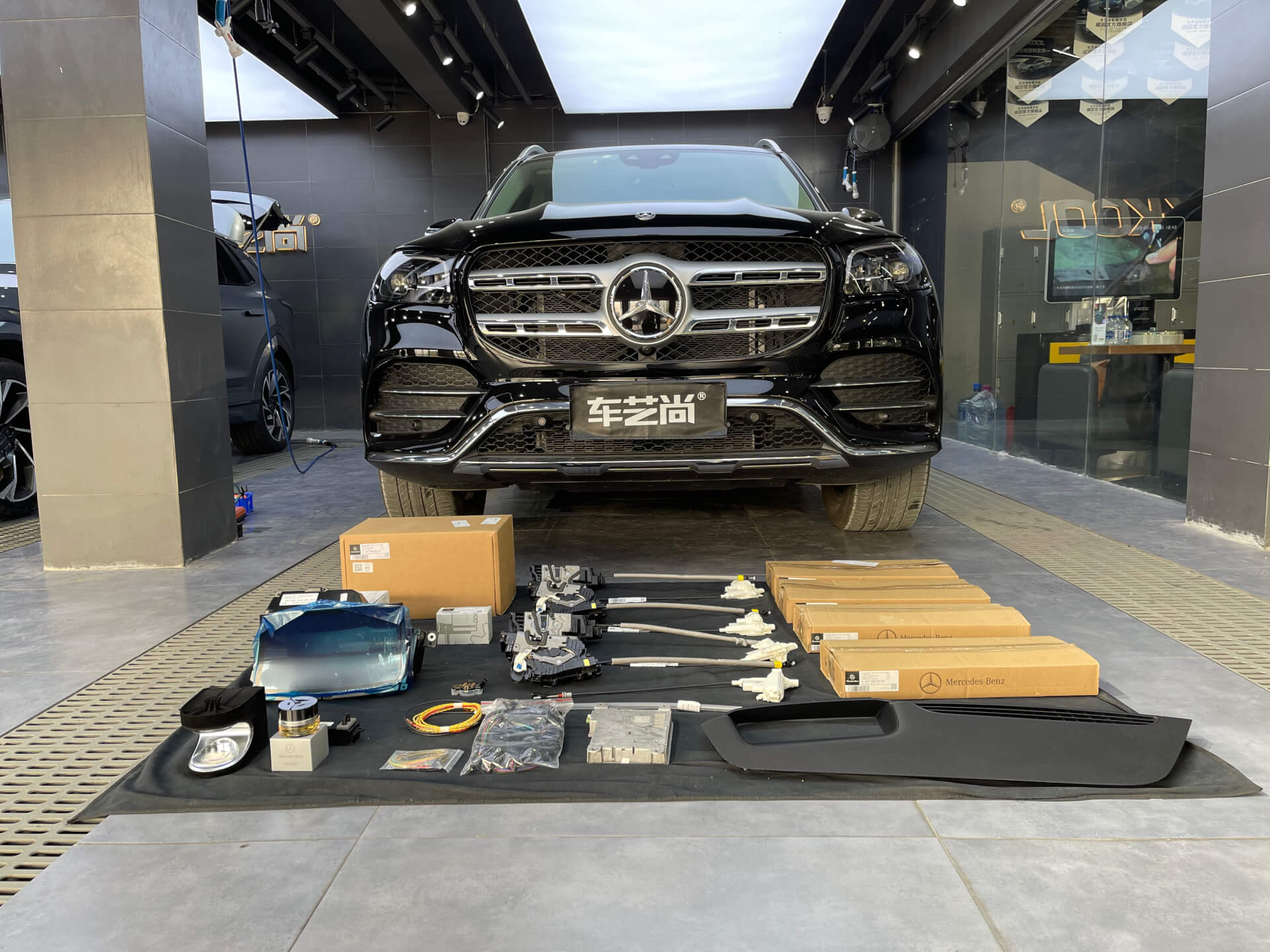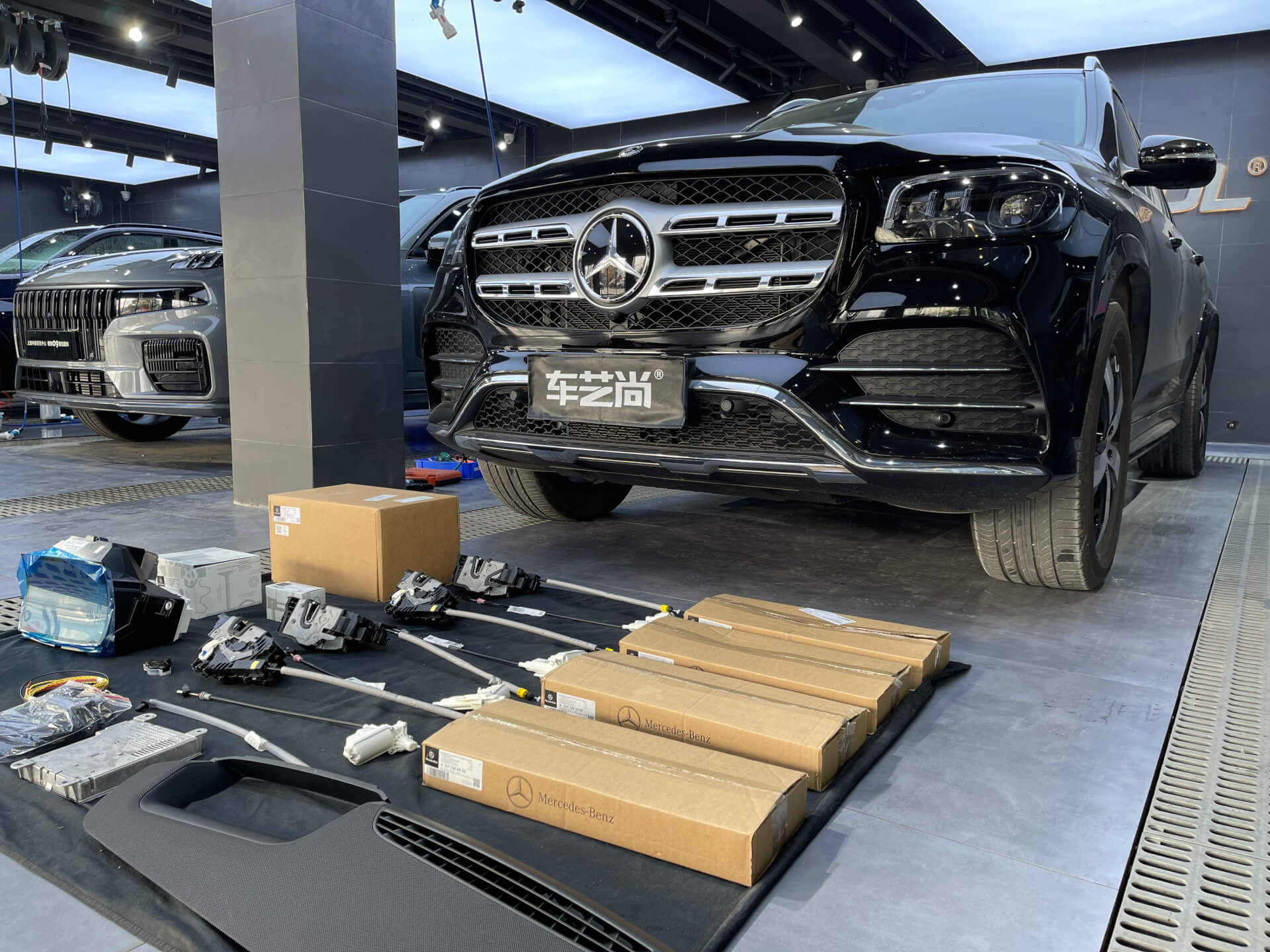 奔驰新款GLS450施工HUD平视显示系统,香氛负离子,四门电吸门
