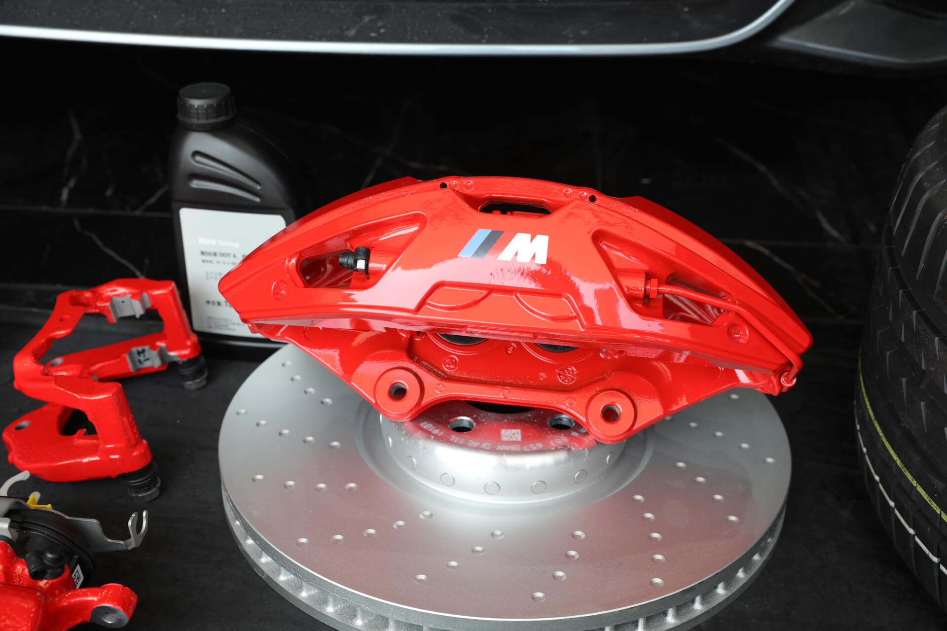 宝马新款5系M Performance高性能前四活塞刹车卡钳和半打孔刹车盘