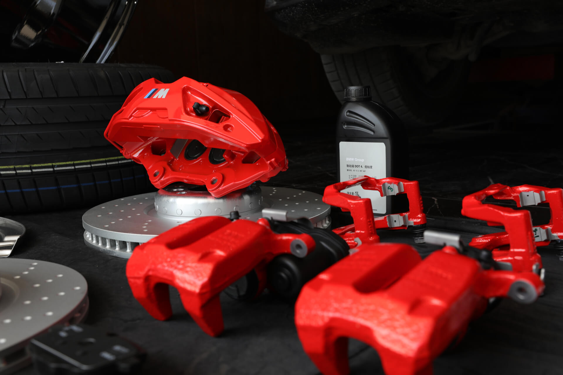 强大的高性能制动系统套件配有轻量化运动型通风制动盘,即使在较高热负荷下也可确保较短的制动距离。前轮装配四活塞固定式卡钳,后轮装配单活塞浮动式卡钳。同时,饰以醒目动感的BMW M Performance高性能红色和四色BMW M标志,锐意尽展无疑。