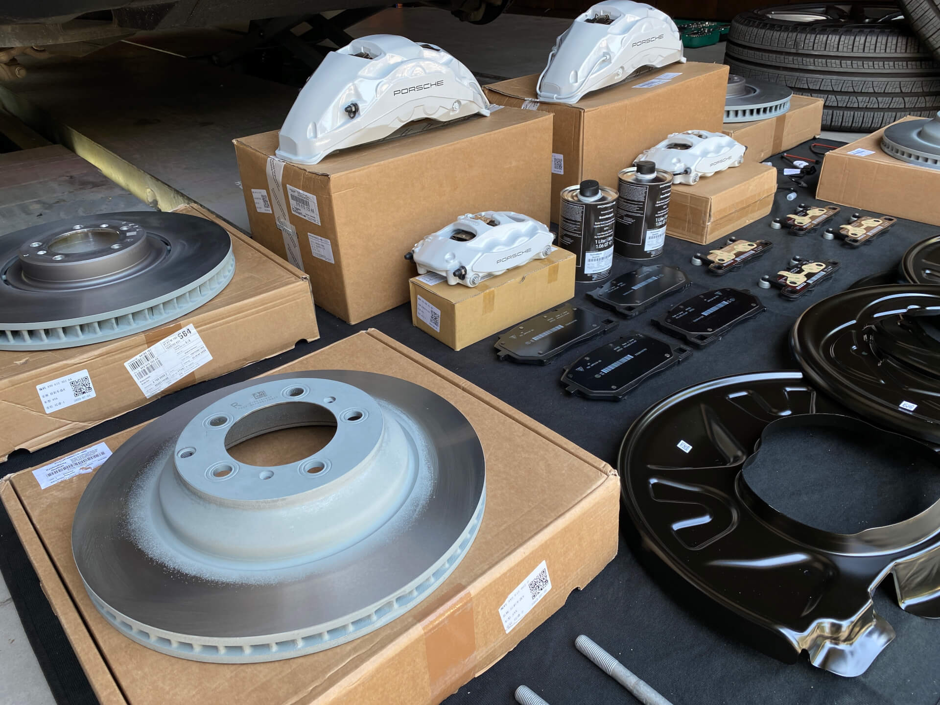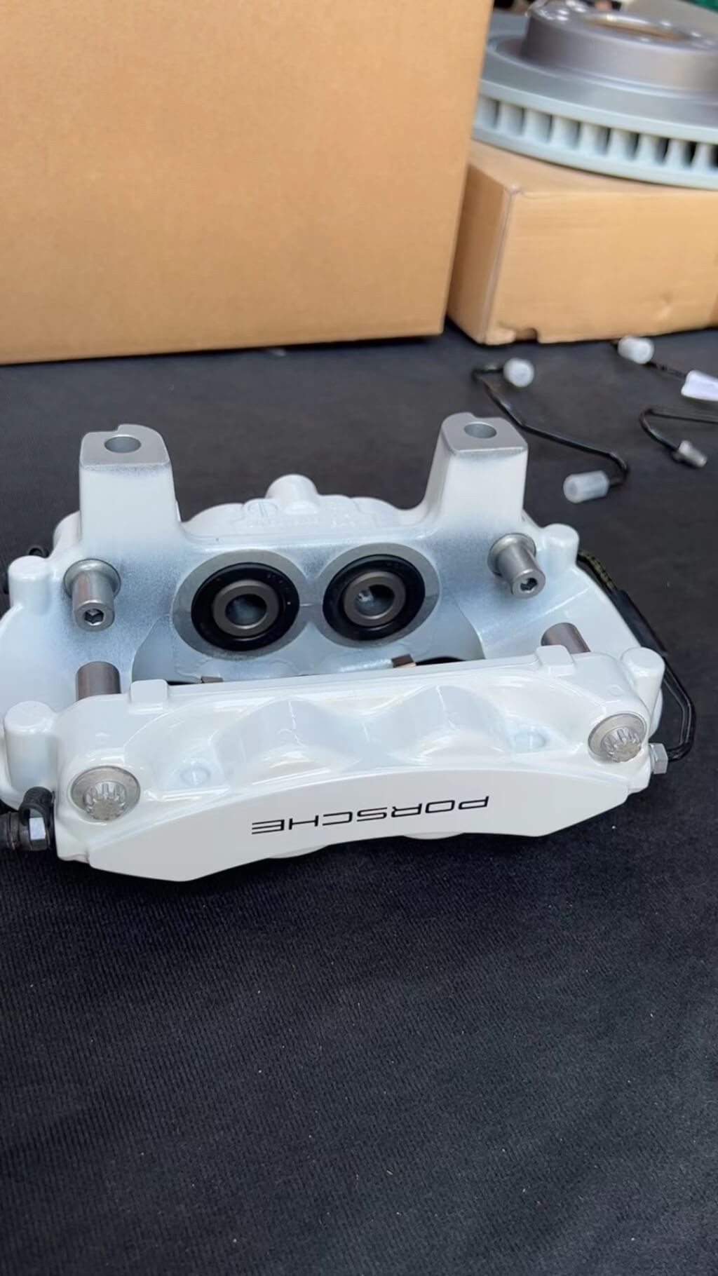 带陶瓷涂层制动盘(碳化钨)的制动系统,可提高反应性,衰减稳定性,并显著减少制动粉尘的形成,另一个优点是制动盘的耐腐蚀增强,使用寿命更长,白色涂层制动卡钳使制动器具有独特外观