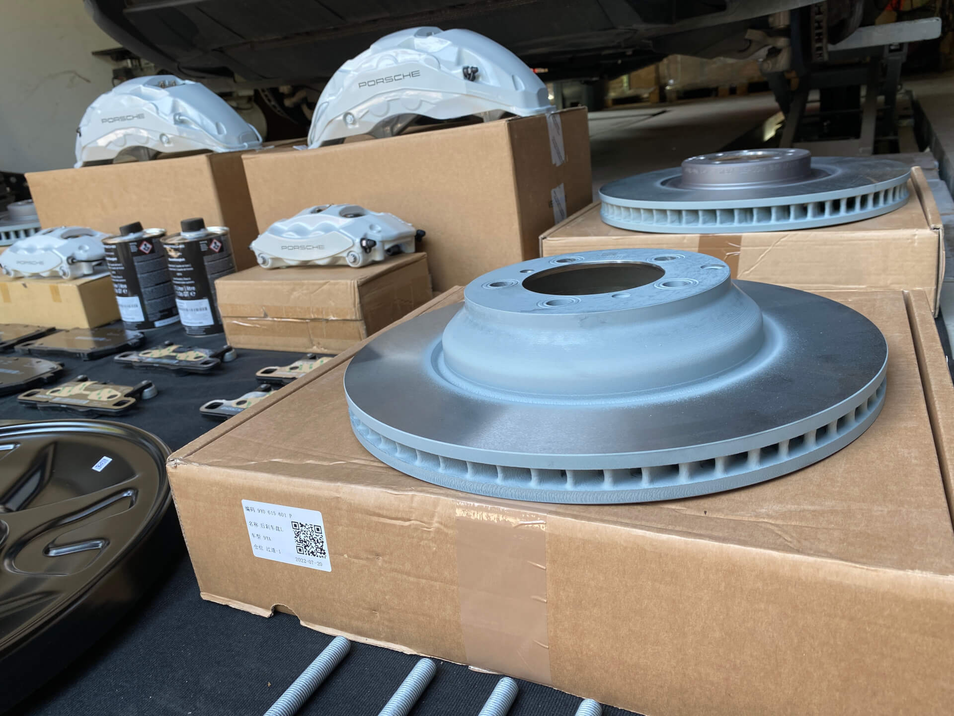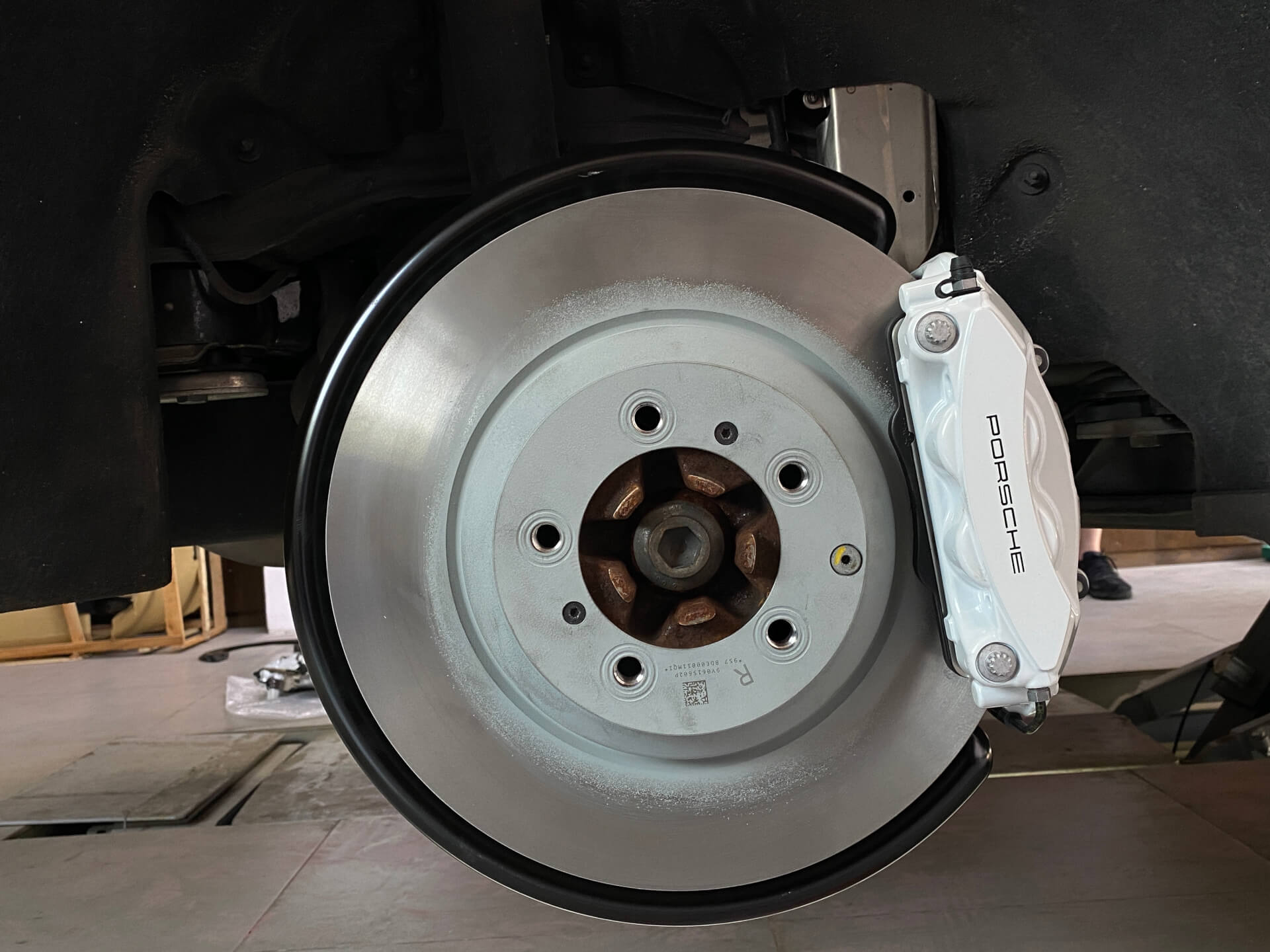 保时捷全新世代Cayenne Turbo刹车系统所标准配置的碟盘,它既不会生锈,也几乎不会产生任何刹车粉尘。