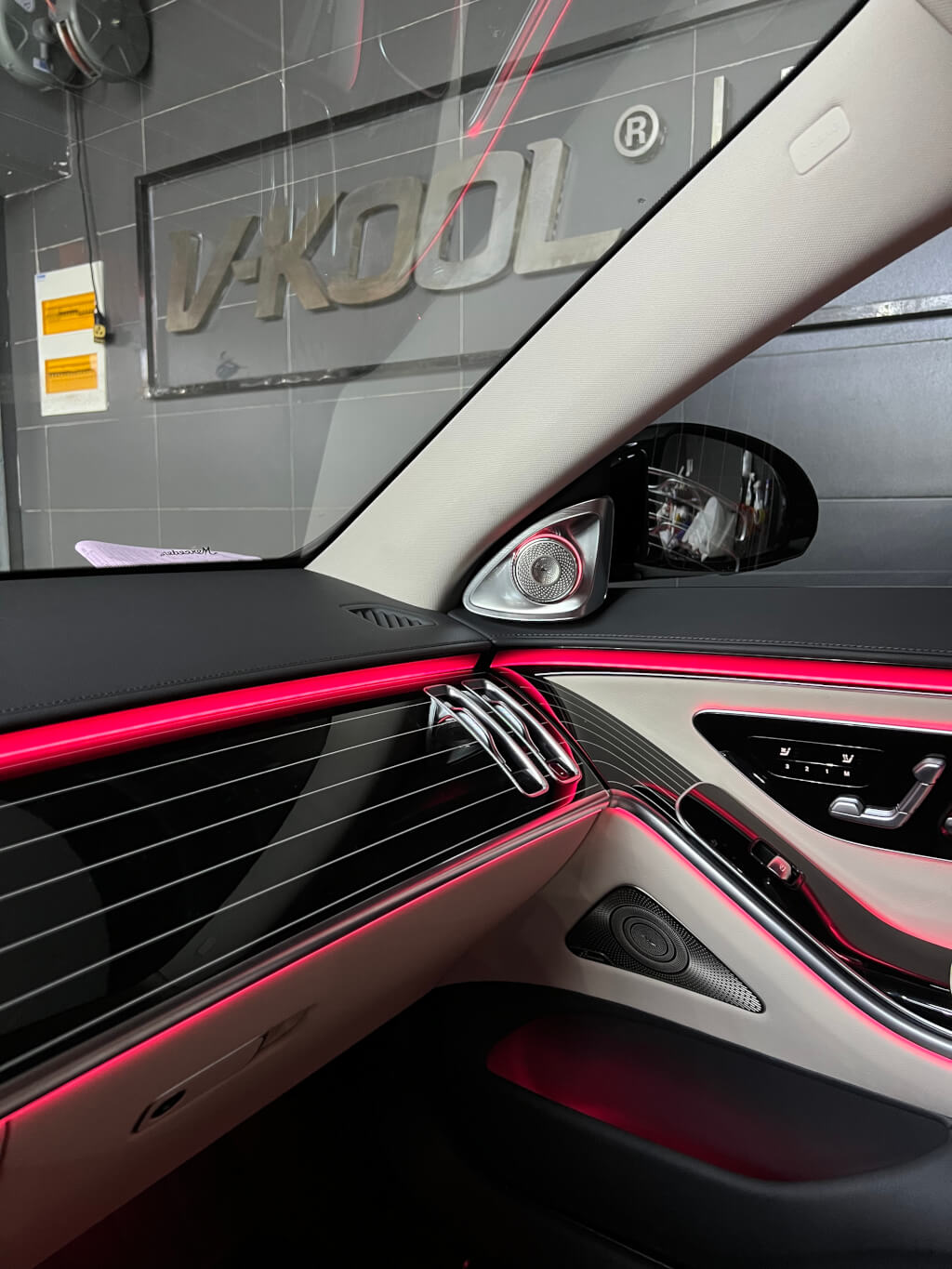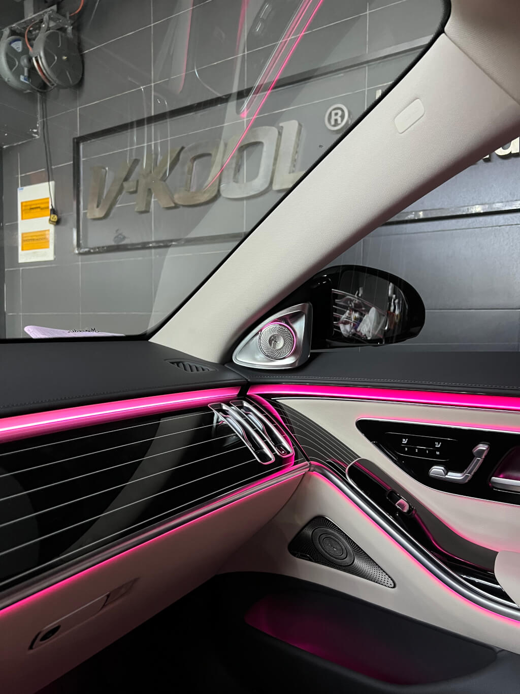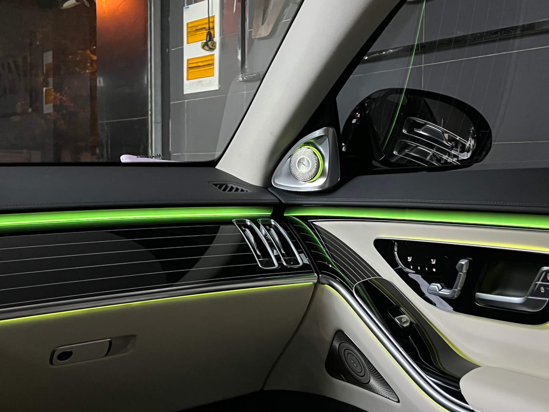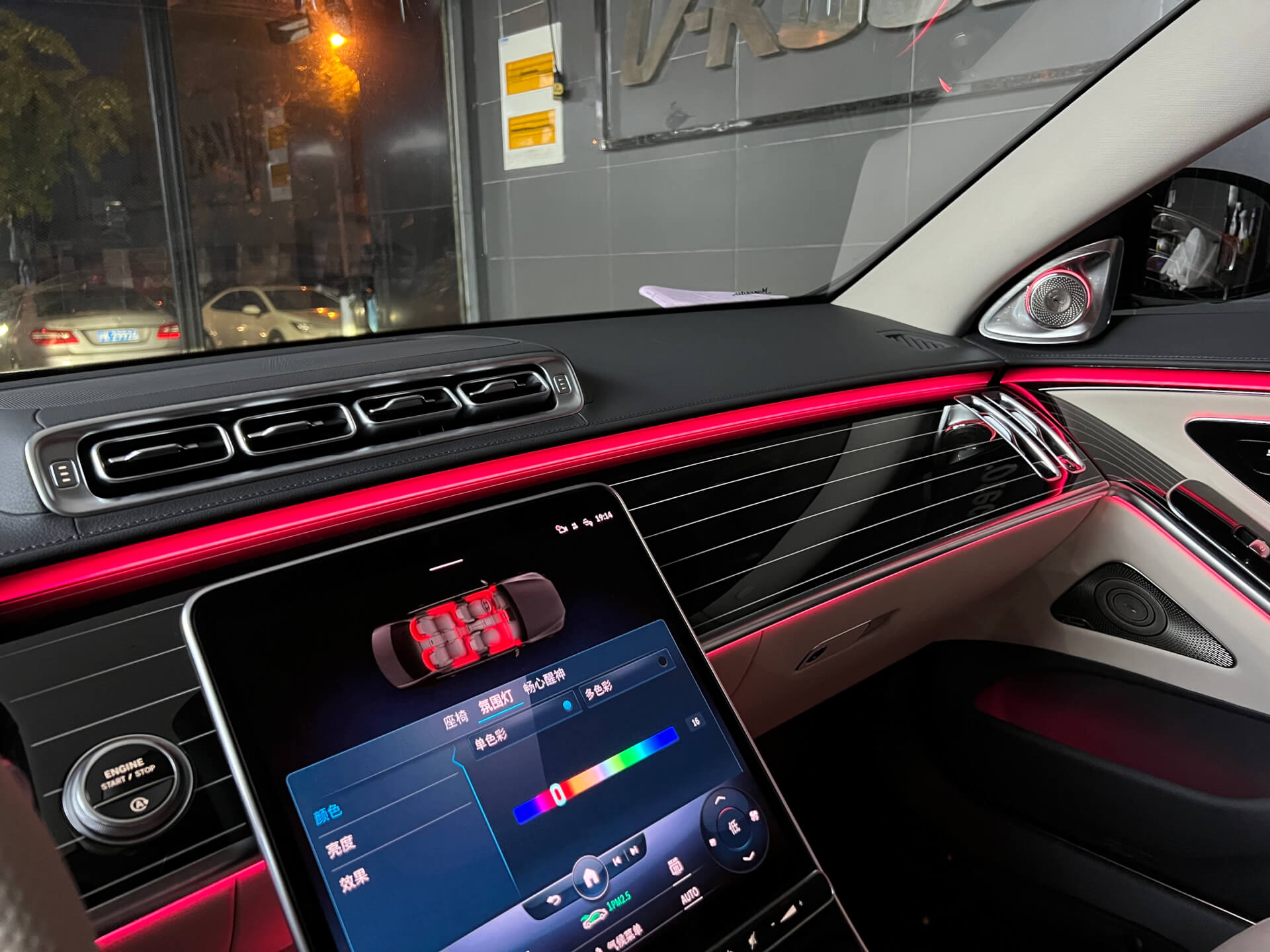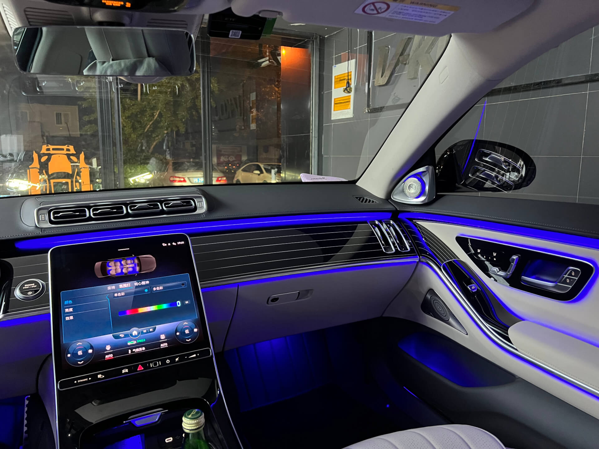 奔驰新款S安装好主动式氛围灯和4D旋转高音的效果图