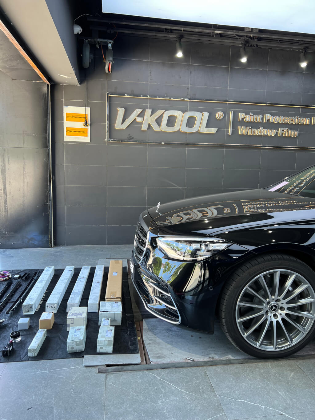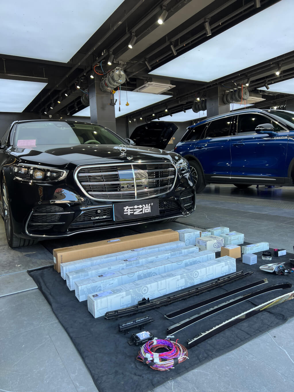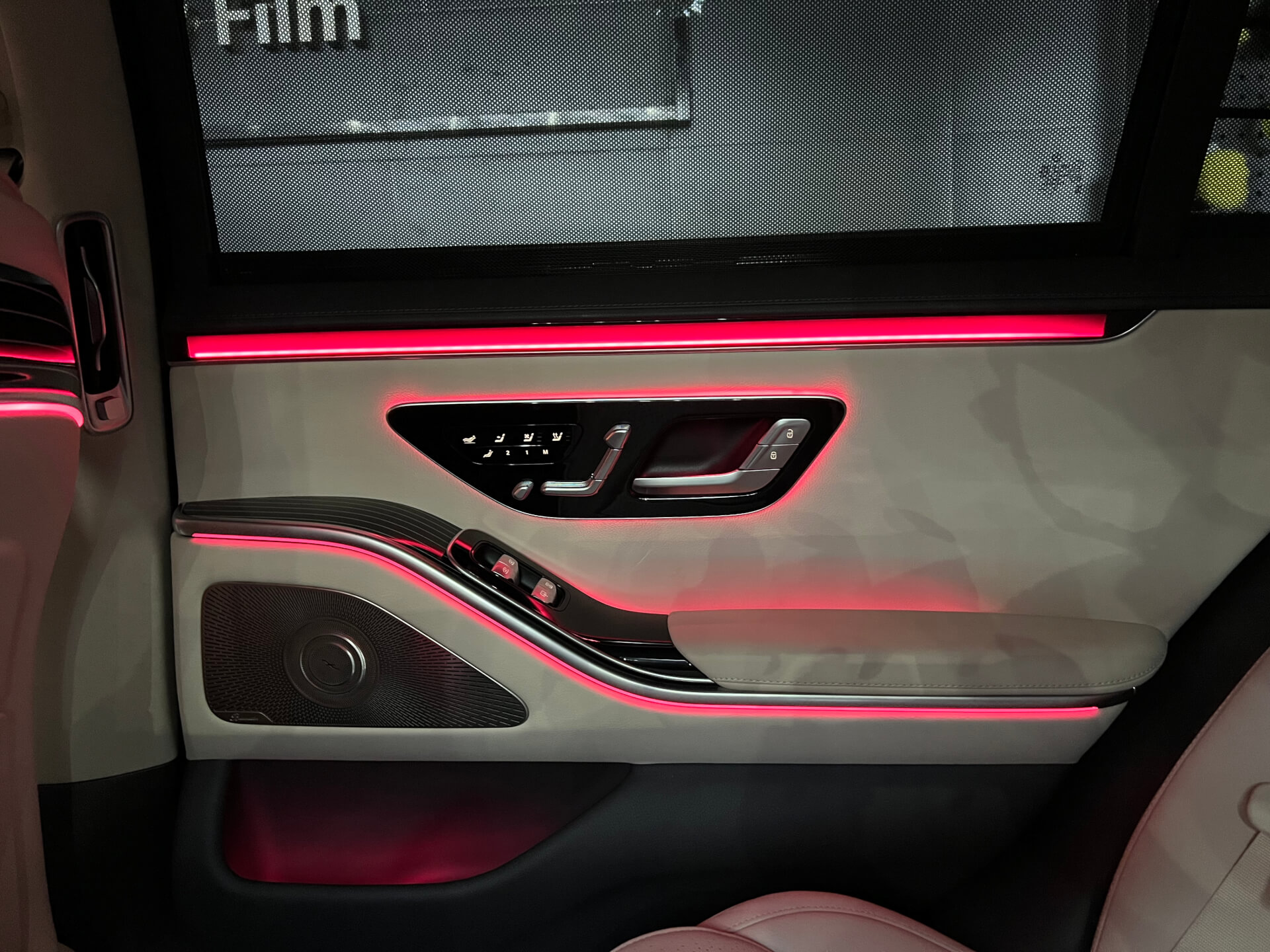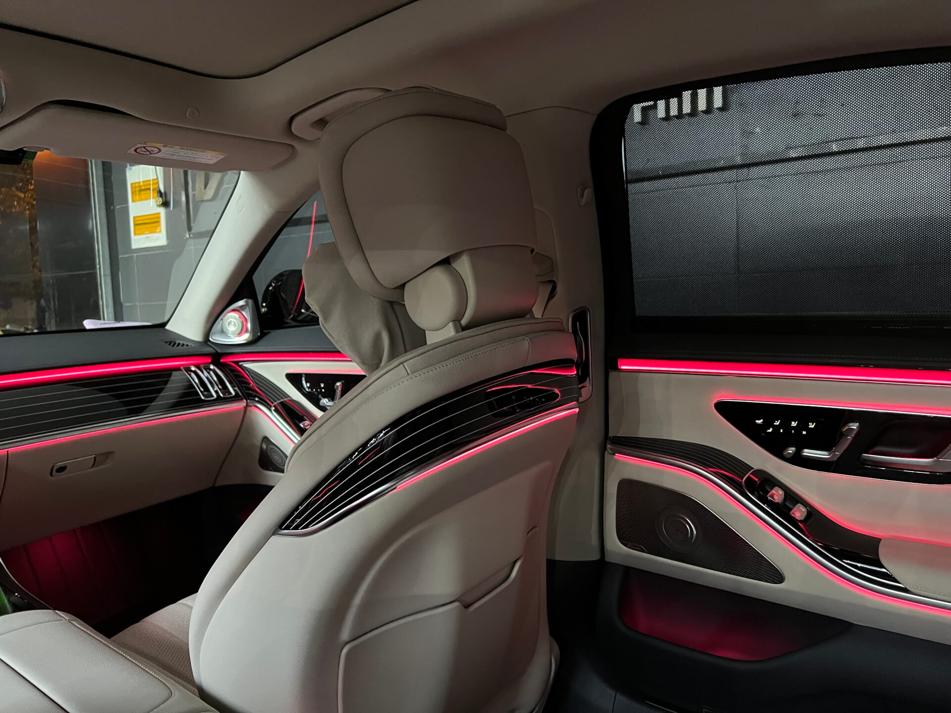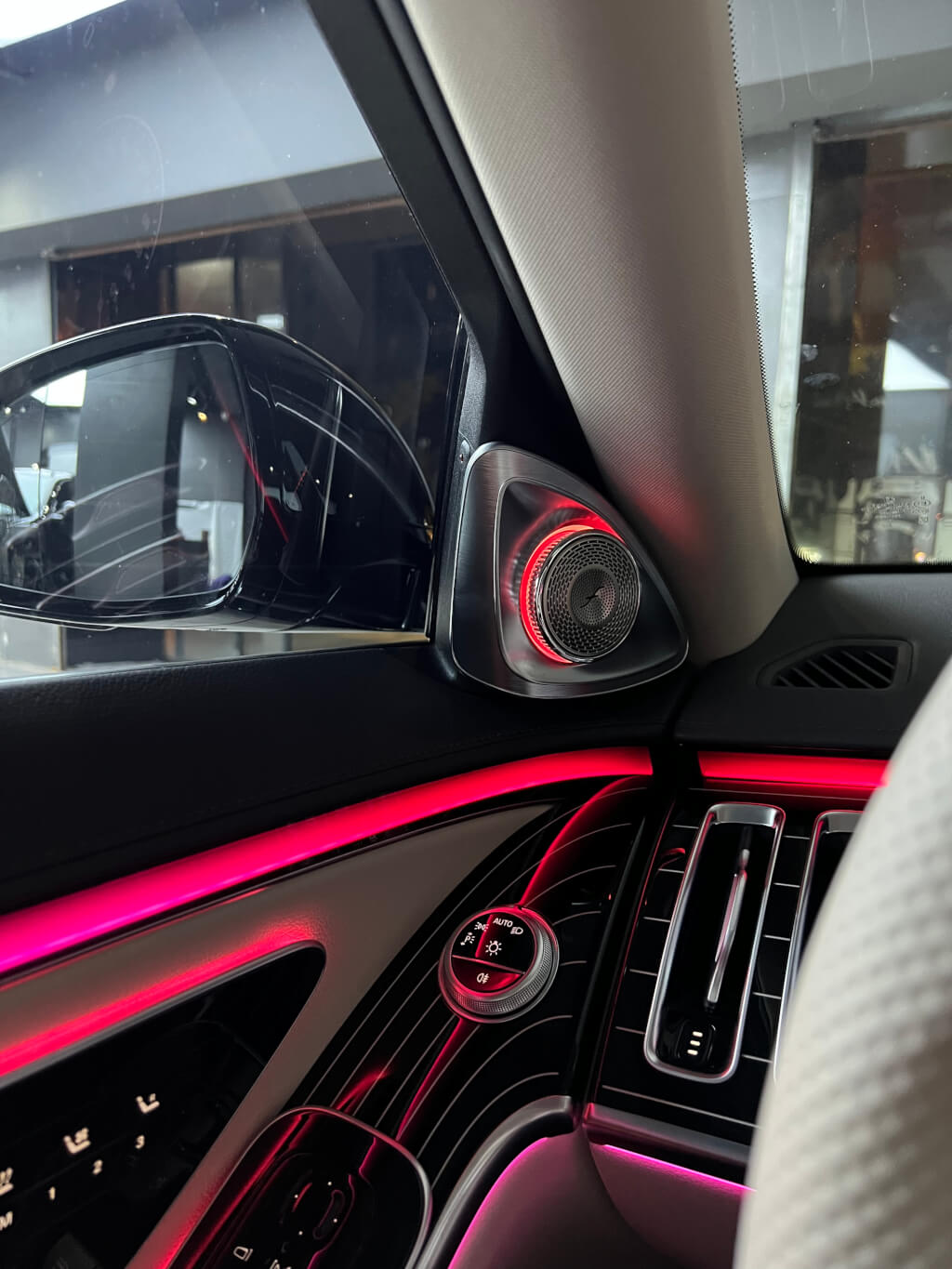 奔驰新款S安装好主动式氛围灯和4D旋转高音的效果图