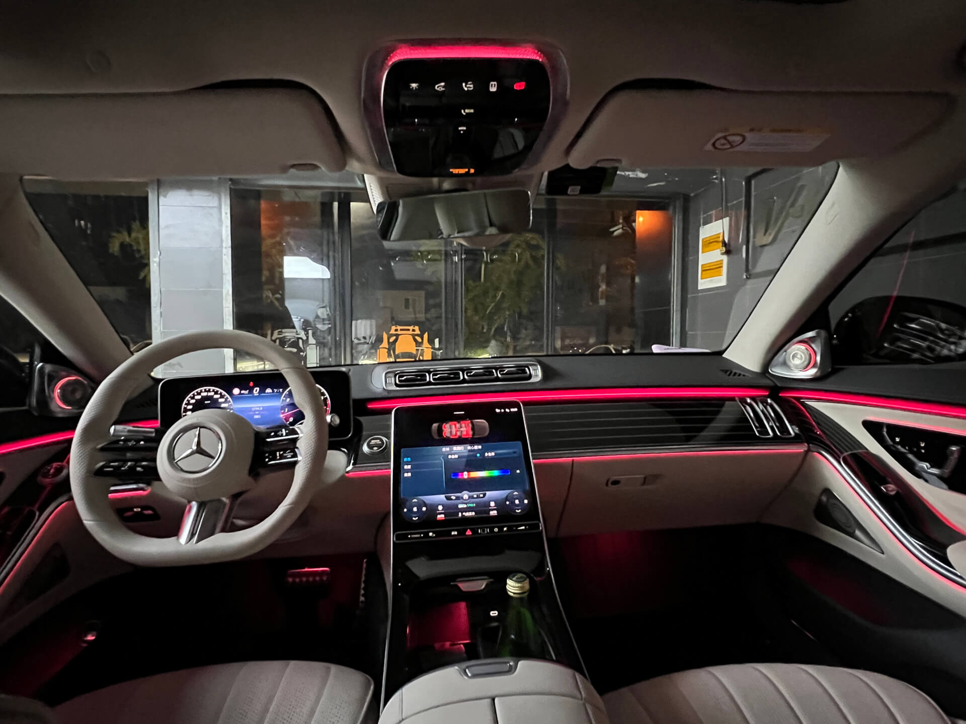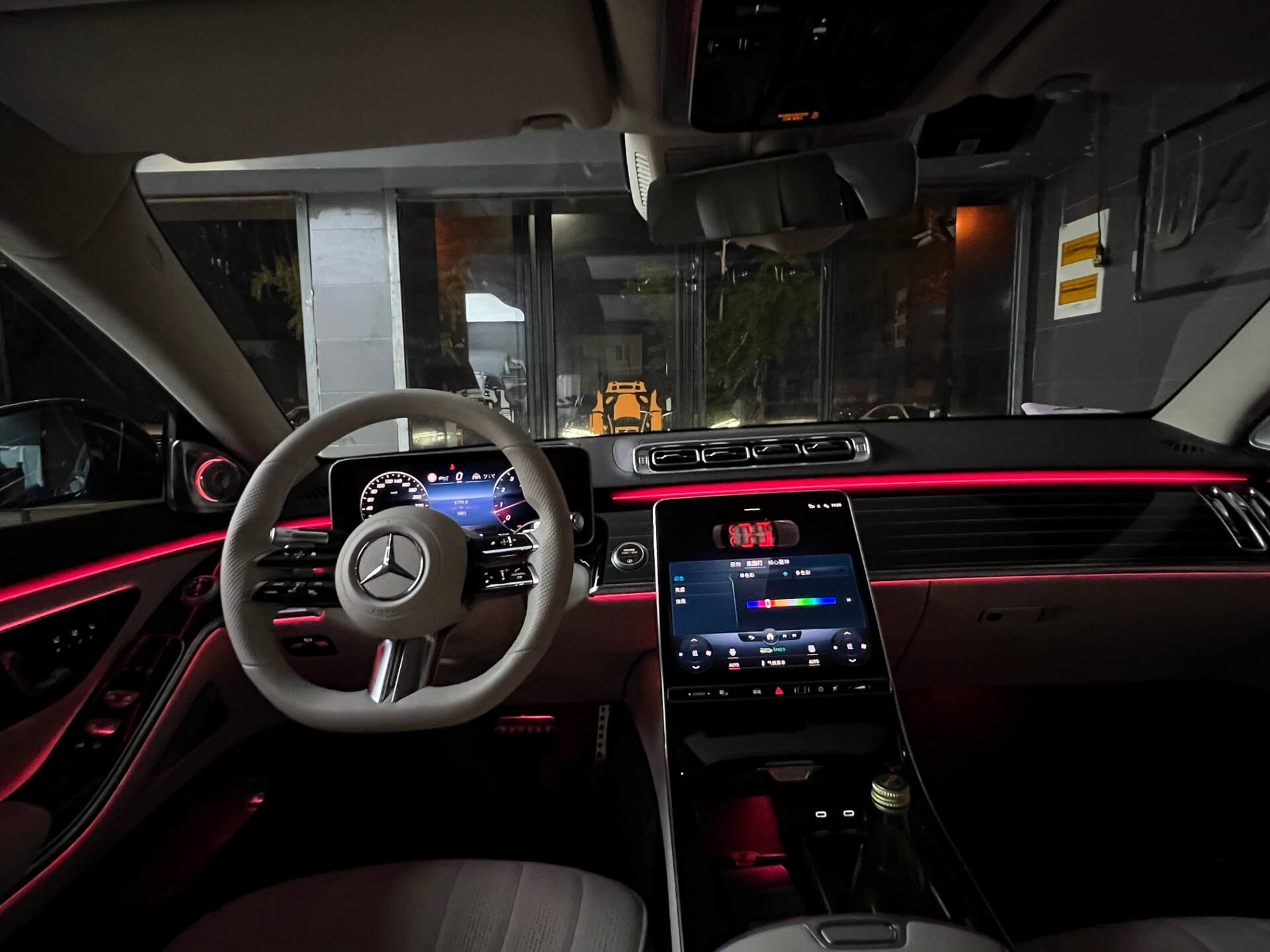 奔驰新款S安装好之后的效果,原厂主动式氛围灯