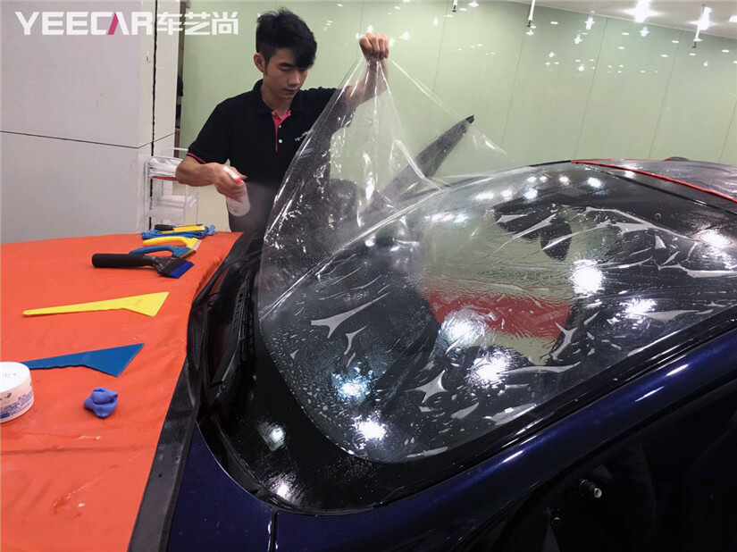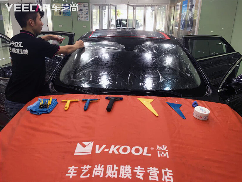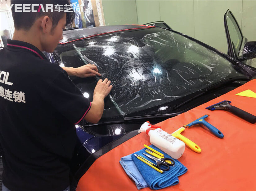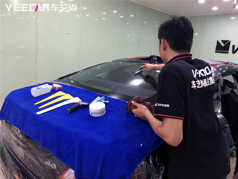 车艺尚技师专注贴膜的每一个细节,膜贴到了玻璃的边缘,整体美观大方裁剪工整,几乎看不出贴膜的痕迹