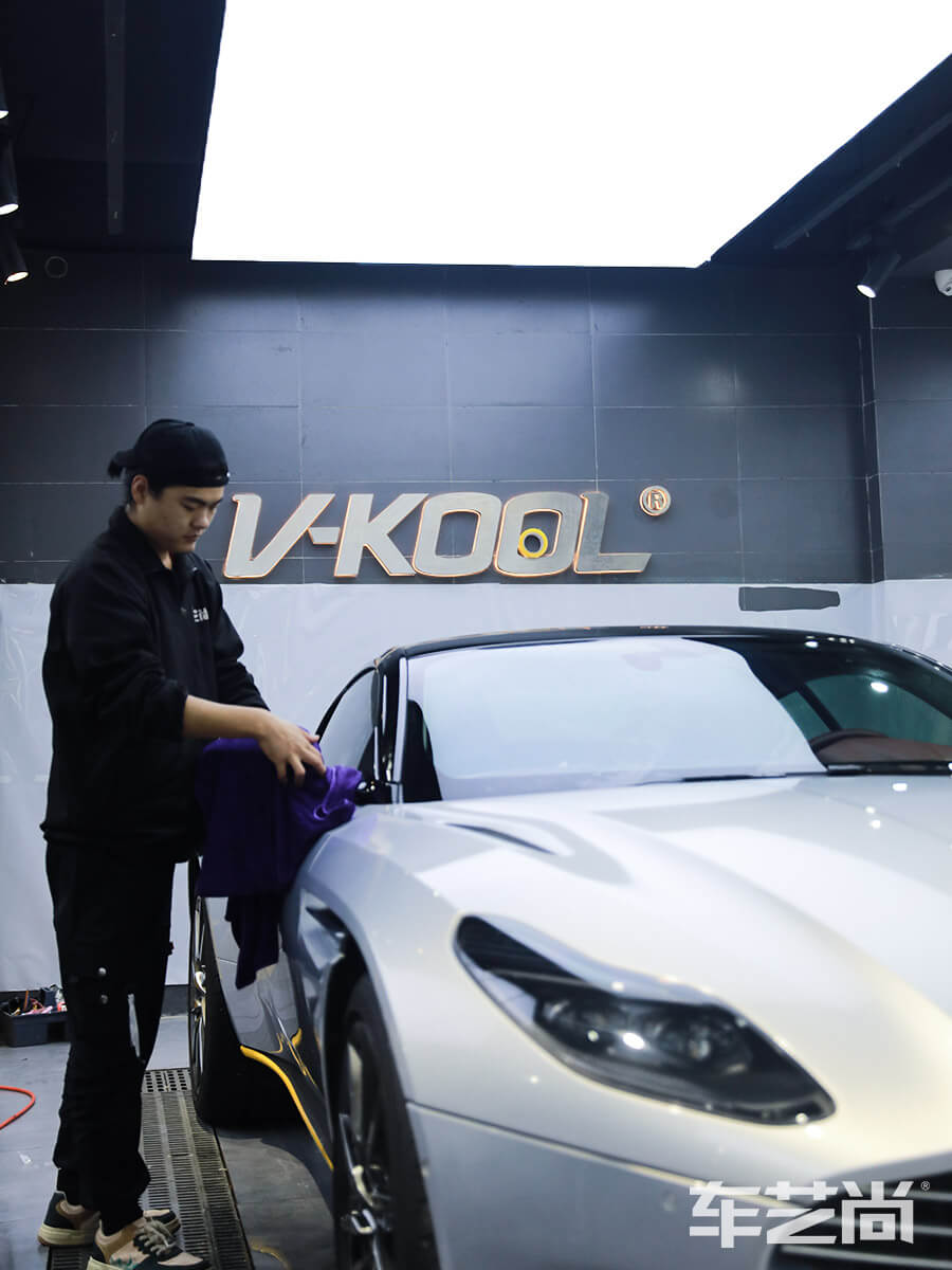 阿斯顿马丁 Vantage 银色施工隐形车衣流程: