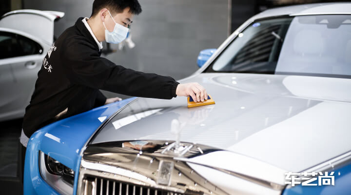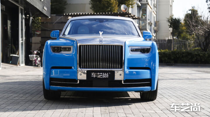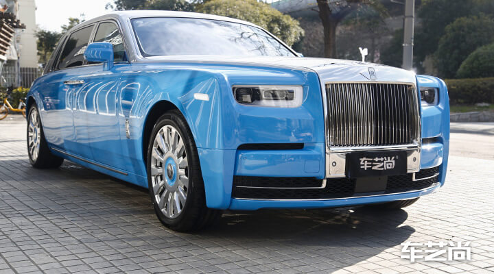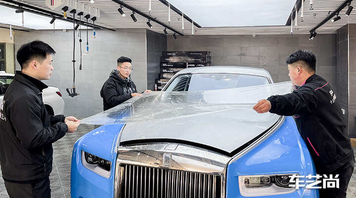 个性设计劳斯莱斯幻影蓝色双拼施工隐形车衣