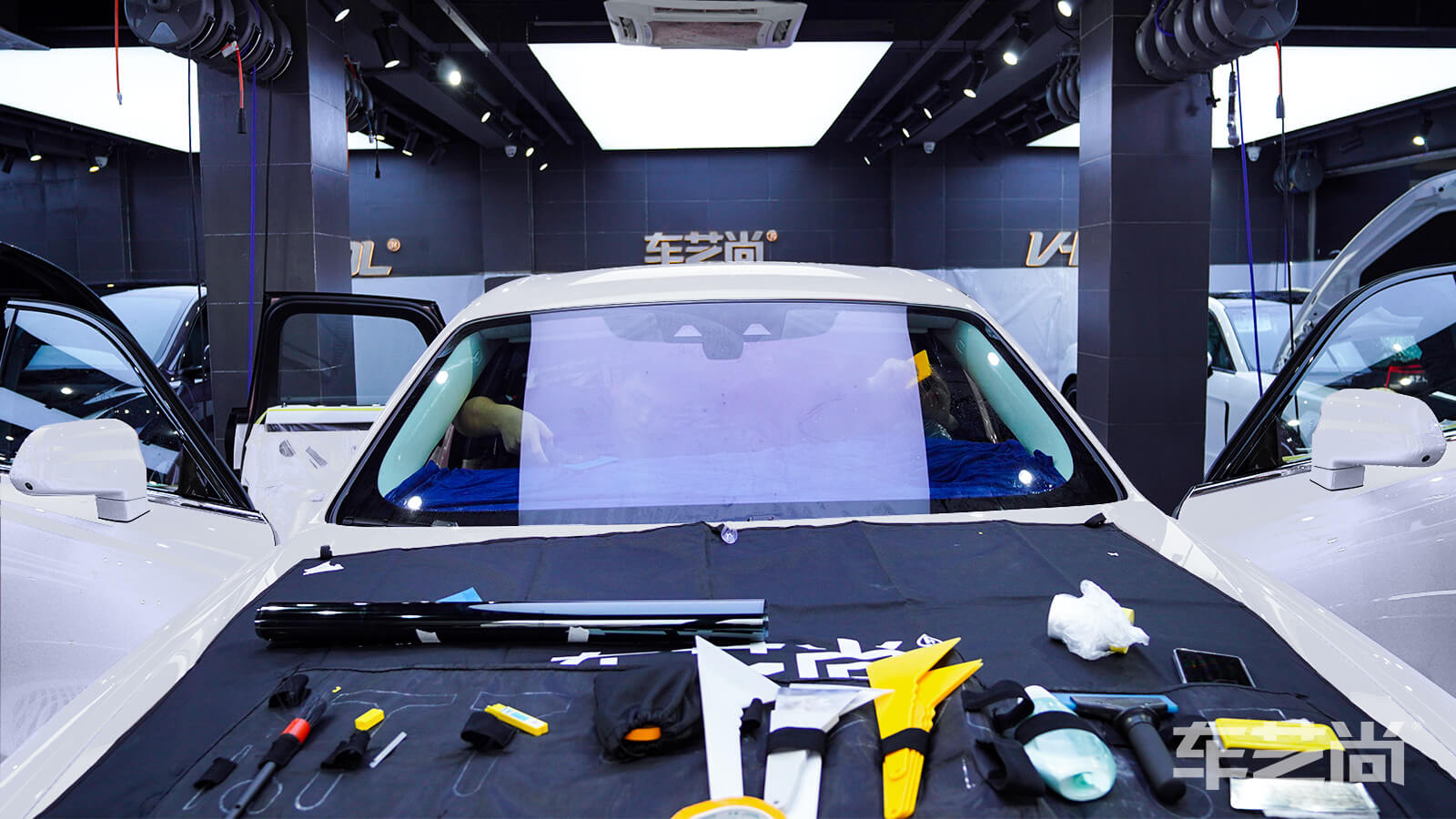 劳斯莱斯古思特白色施工威固玻璃膜流程