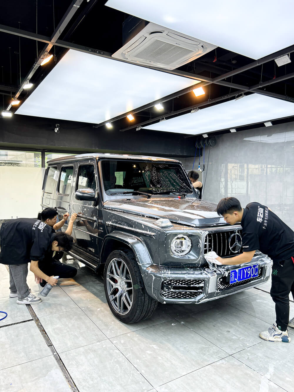 车艺尚宁波旗舰店经营面积450平方,主营高端隔热膜、汽车漆面保护膜、改色膜等项目,店内拥有一支优秀的贴膜技师团队,经过各大品牌方考核认证,持证上岗,熟练掌握各种车型的施工要点,可以为车友提供专业的贴膜服务。