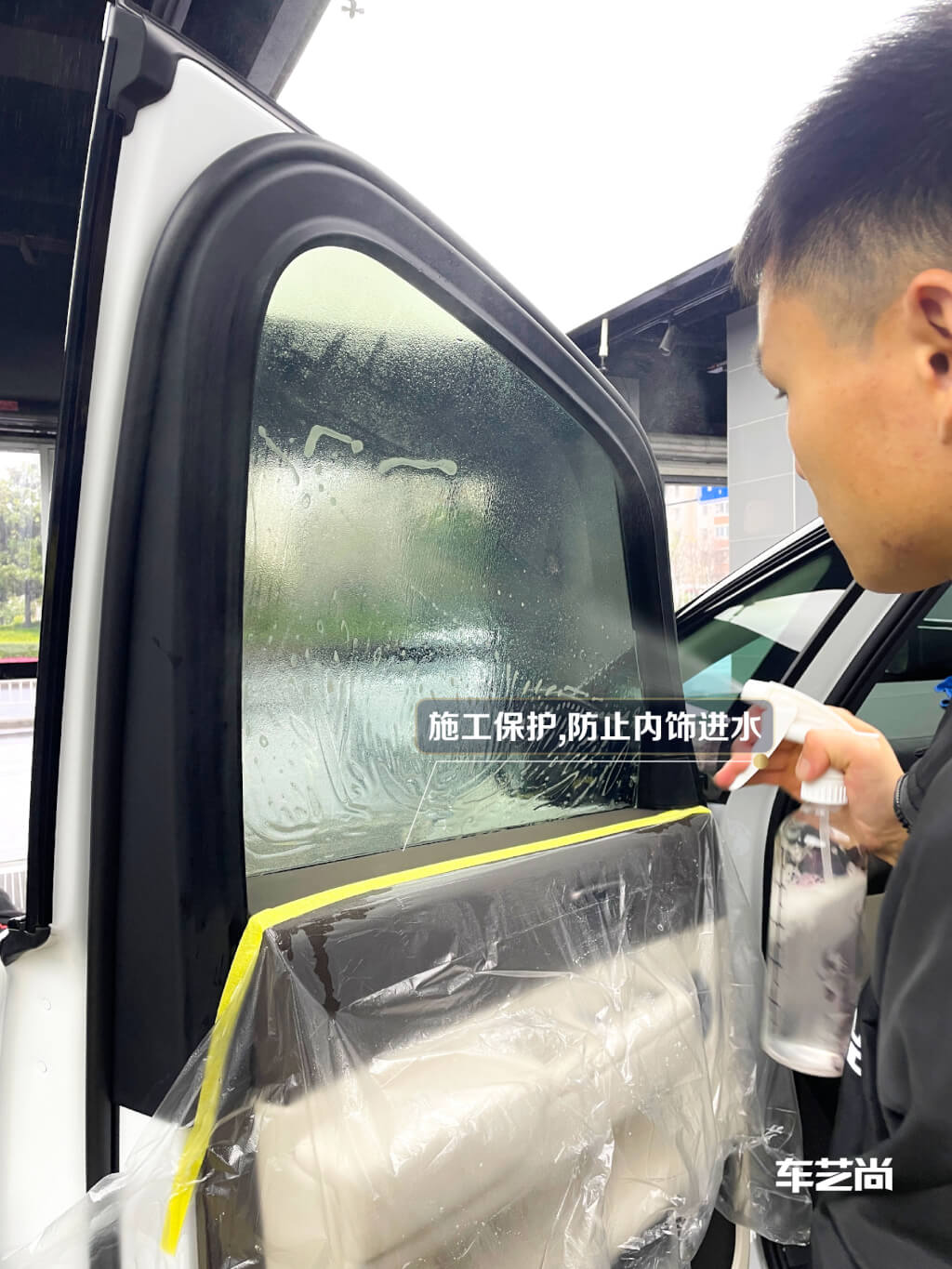 理想MEGA上海装贴威固隔热膜前档VK70+侧后过程
