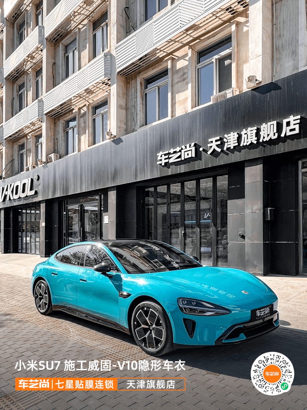 小米su7海湾蓝装贴威固V5隐形车衣施工效果: