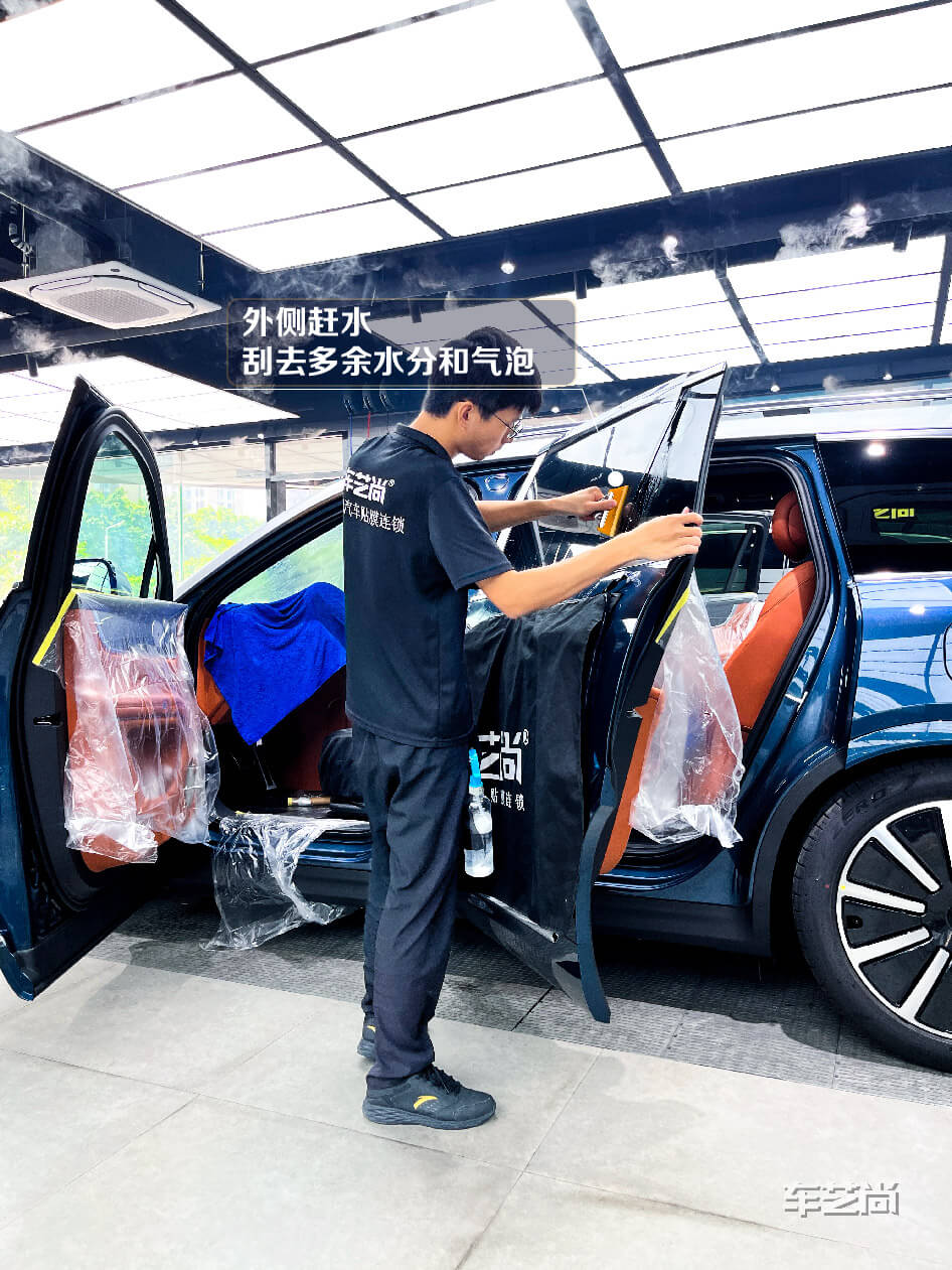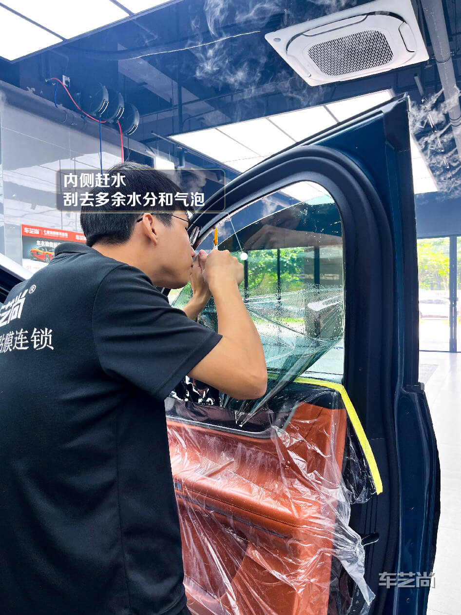微水施工:只采用少量的水就能贴完全车窗膜,避免施工中门板电路、车内仪表台等进水受潮。