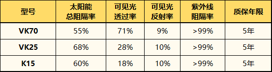 威固隔热膜前档VK70+主副驾VK25+后排后挡K15介绍: