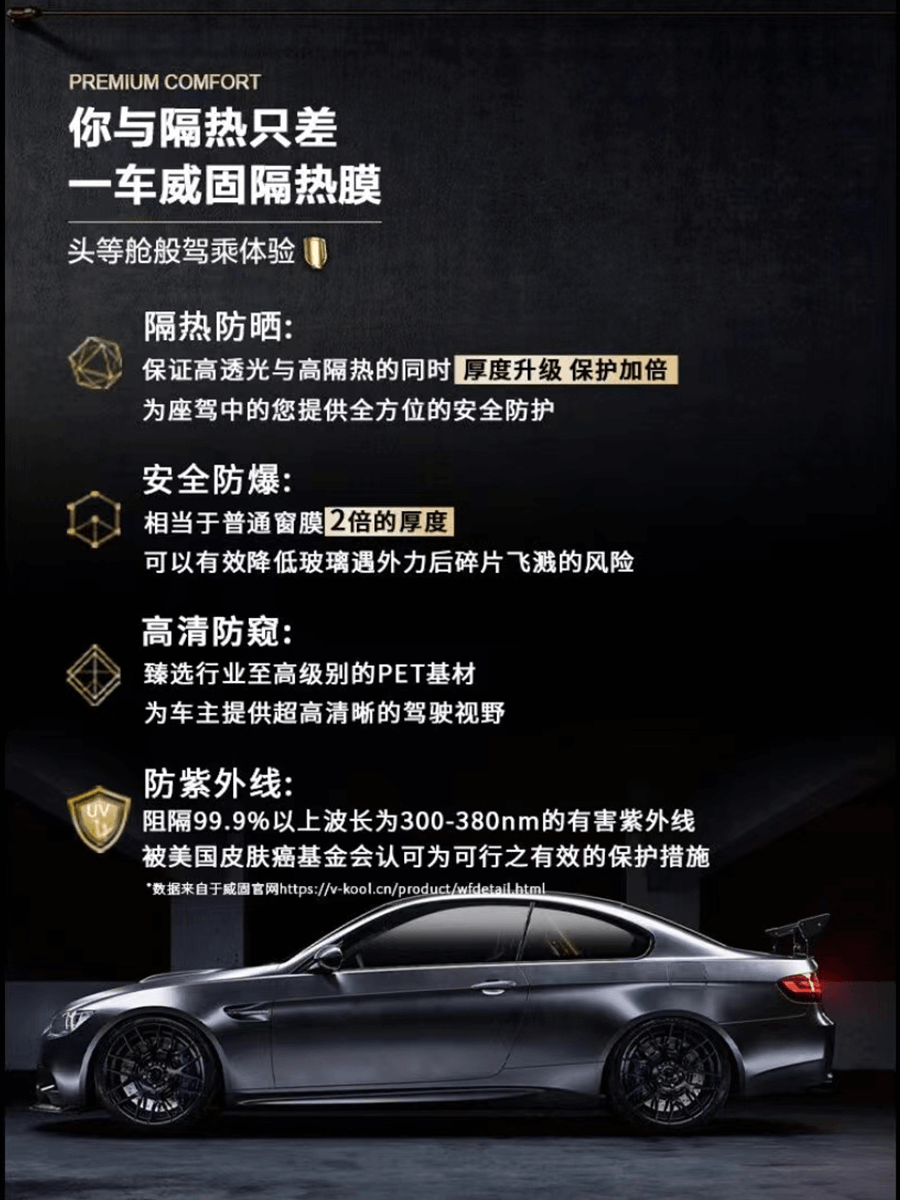威固(V-KOOL),是隶属于美国伊士曼化工旗下的车膜品牌,在中国已有二十多年历史,销往全球二十多个国家,累计超过2500万消费者已成为威固车主。