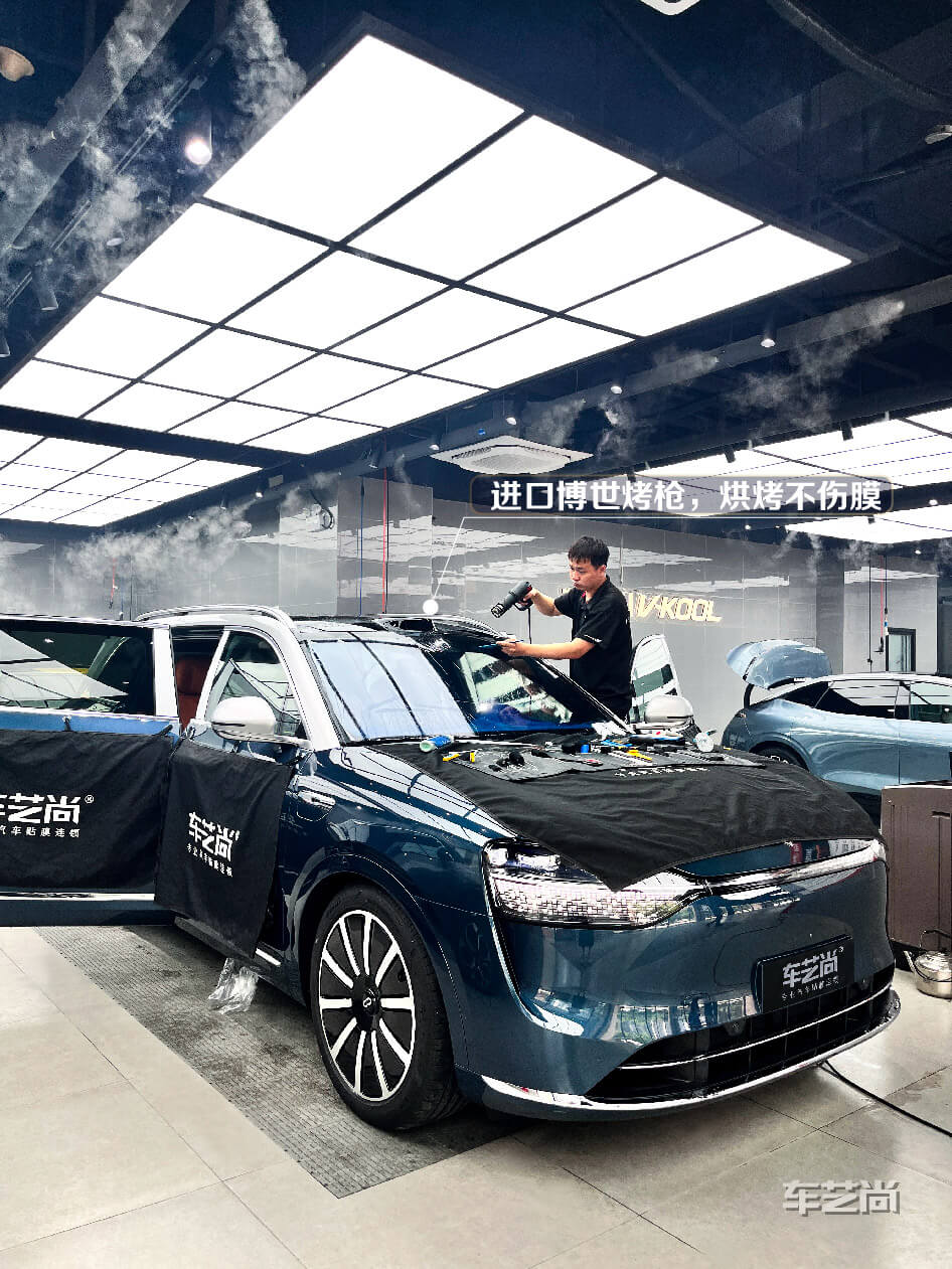 问界M9装贴威固隔热膜施工过程,前档VK70+主副驾VK25+后排后挡K15