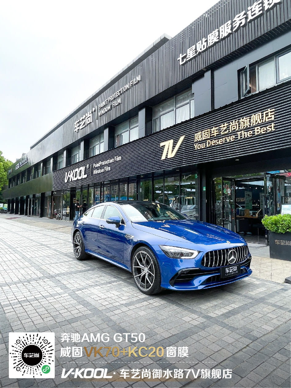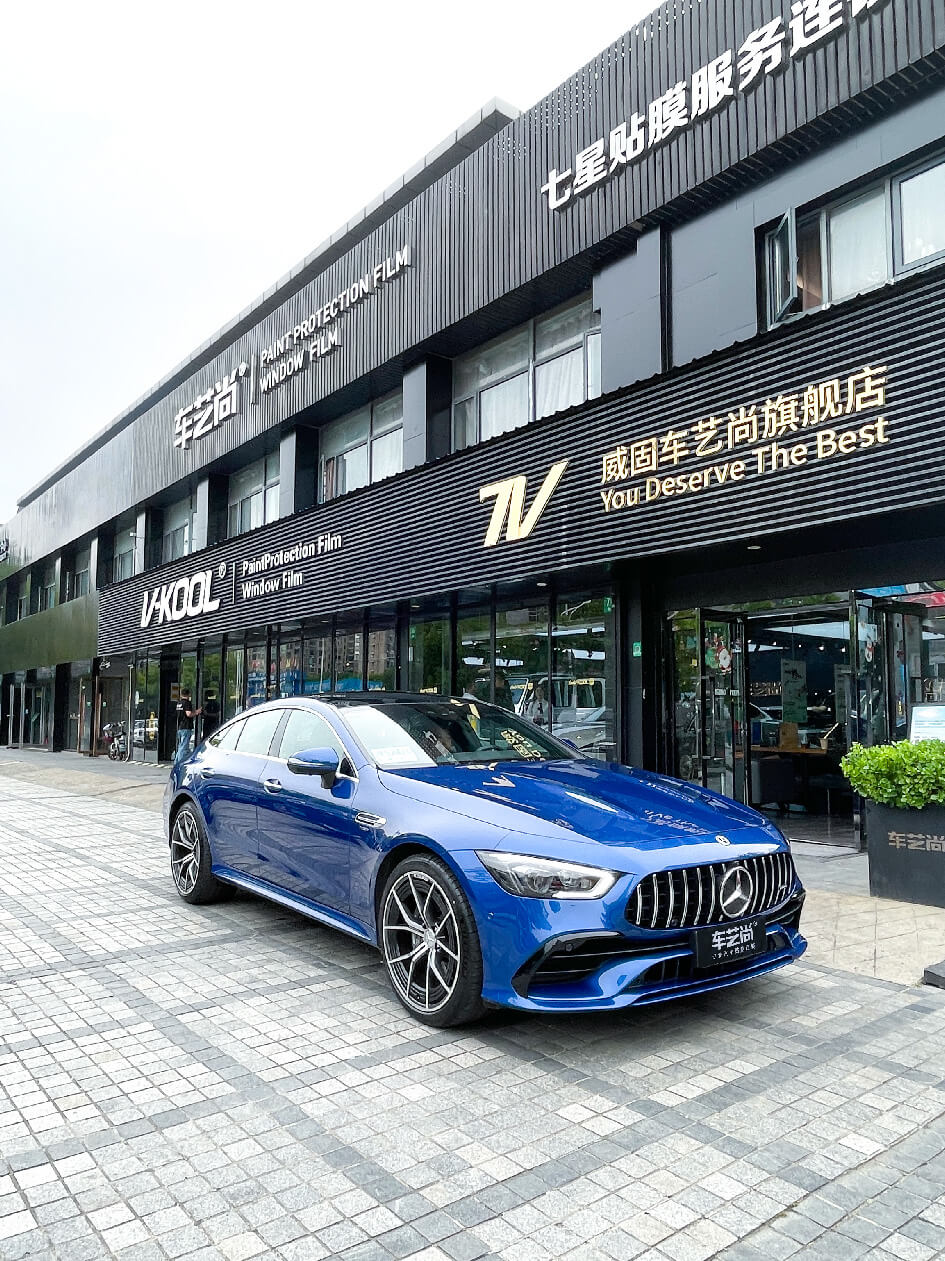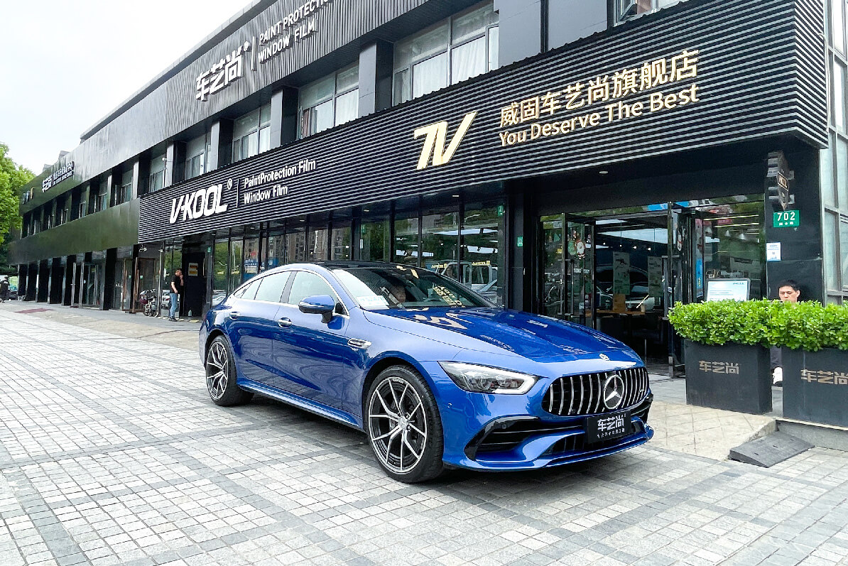 奔驰AMG GT 50是一款高性能的豪华跑车,是AMG GT系列中的一款重要车型。继承了AMG GT系列的动感设计,具有修长的发动机罩和流线型车身,营造出强烈的运动效果。今天这款蓝色奔驰AMG GT 50装贴威固热门型号VK70+KC20隔热膜,清晰度高,隔热性好,有效提升驾驶体验。