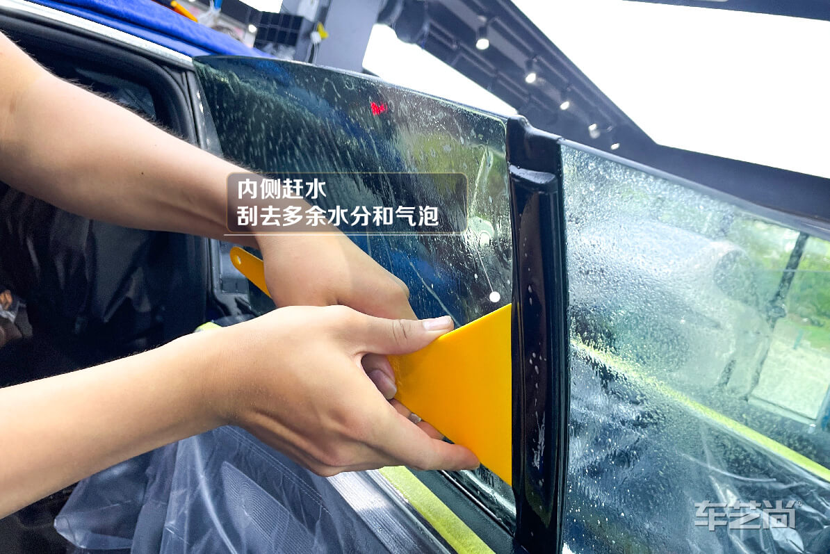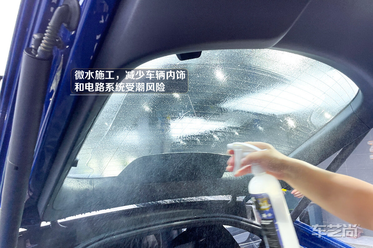 微水施工:只采用少量的水就能贴完全车窗膜,避免施工中门板电路、车内仪表台等进水受潮。