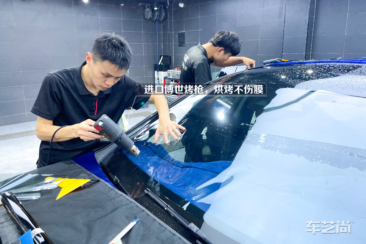 车艺尚的施工车间恒温恒湿恒氧,有助于车膜更好地与玻璃、漆面贴合,减少施工失误