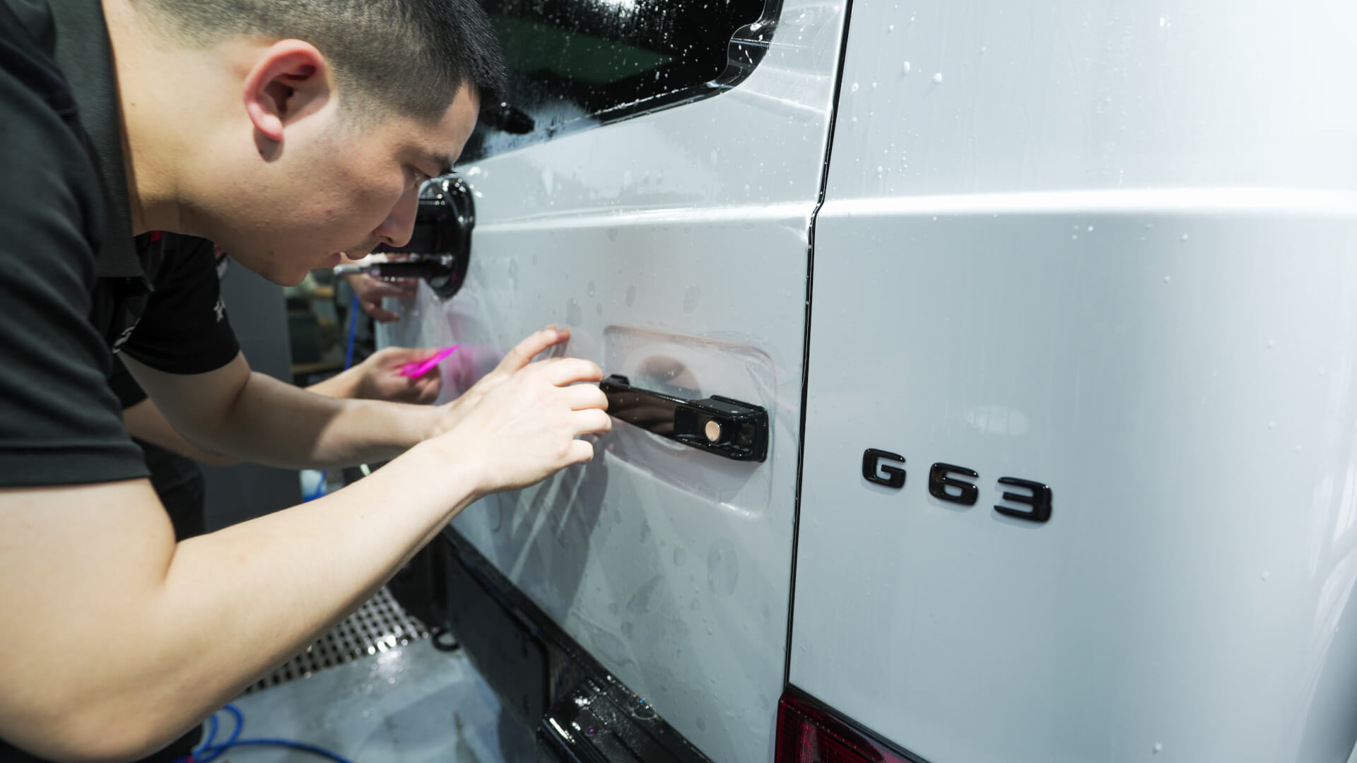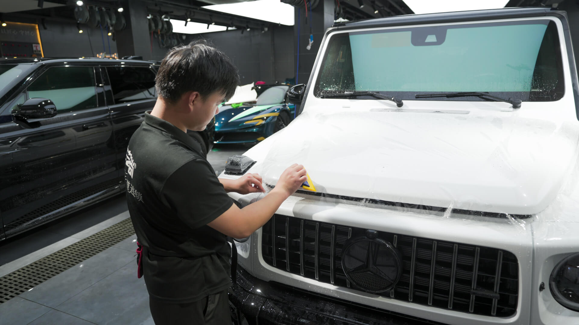 奔驰G63汽车贴膜施工威固V10X车衣流程