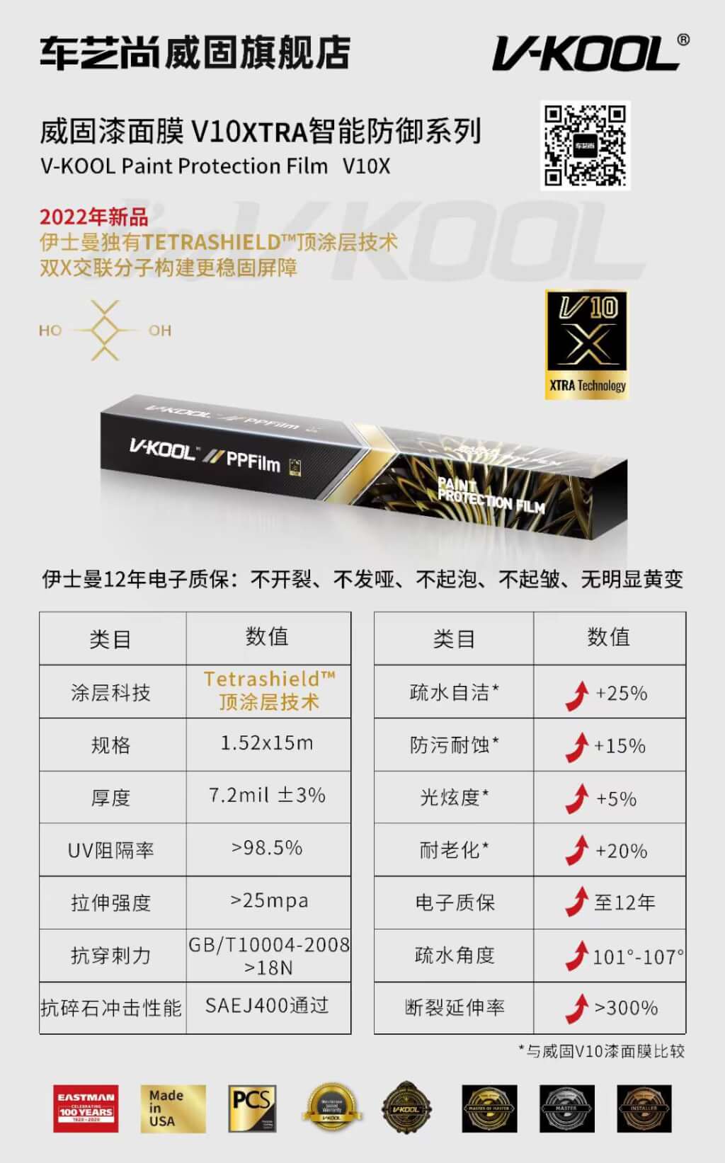 威固V10X隐形车衣性能参数: