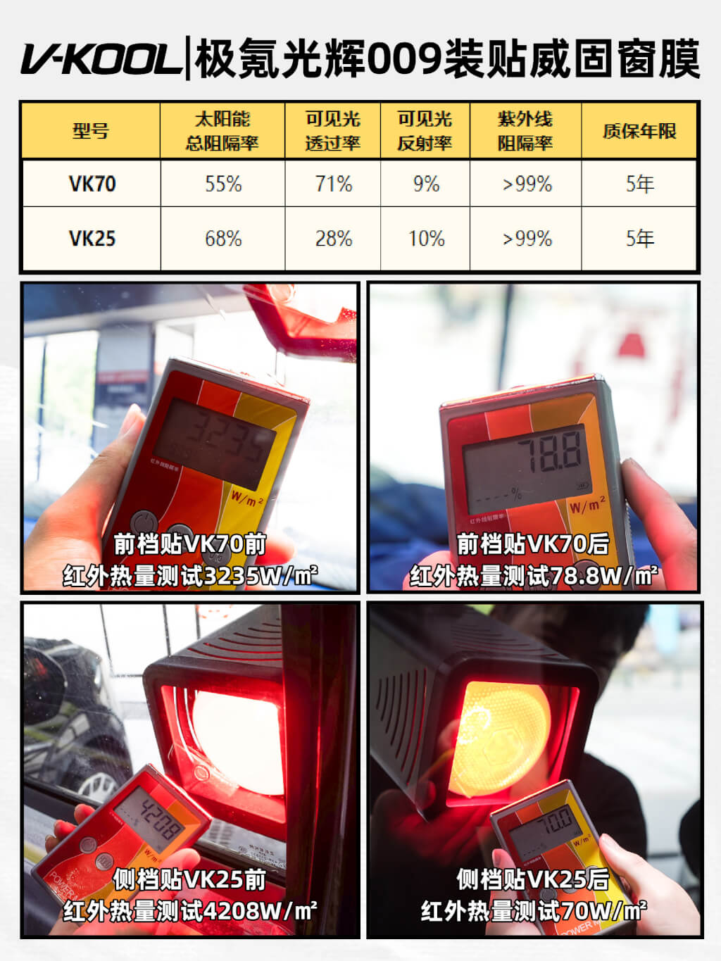 VK70是人们最常贴的威固前档车膜,也是威固最热门的车膜型号,主打的是高隔热,高透光,提供超高清晰驾驶视野,减少视觉疲劳。被誉为“隔热清晰双冠王”,将隔热性能和清晰视野做到完美结合。前档VK70+侧后挡VK25是人们常用的威固车膜组合,其中VK25是威固中隐私侧后档窗膜,透明度比较高,适合喜欢良好光线的车友使用。