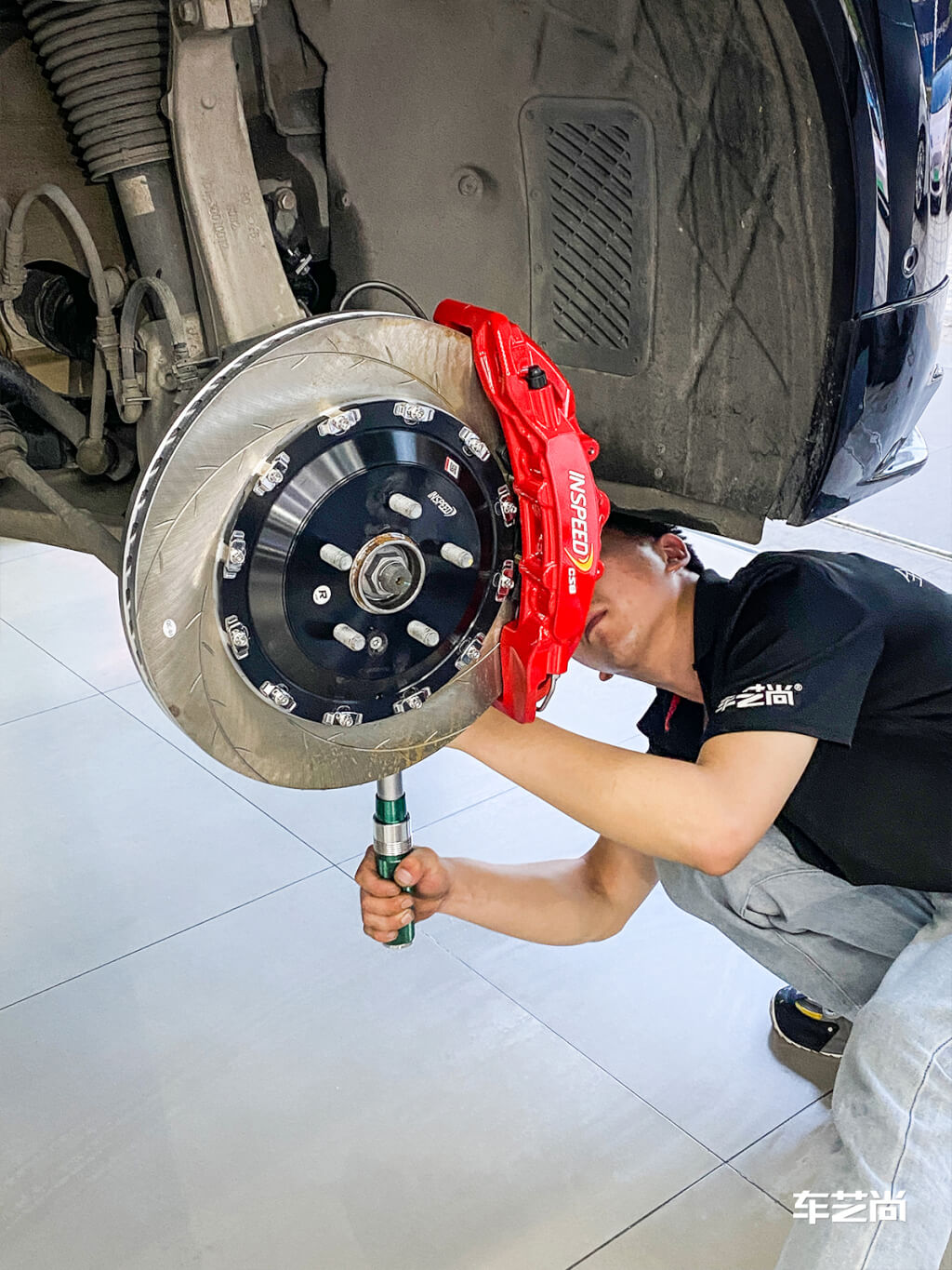 师傅正在安装中,对比原车的,这一套刹车真的太帅了
