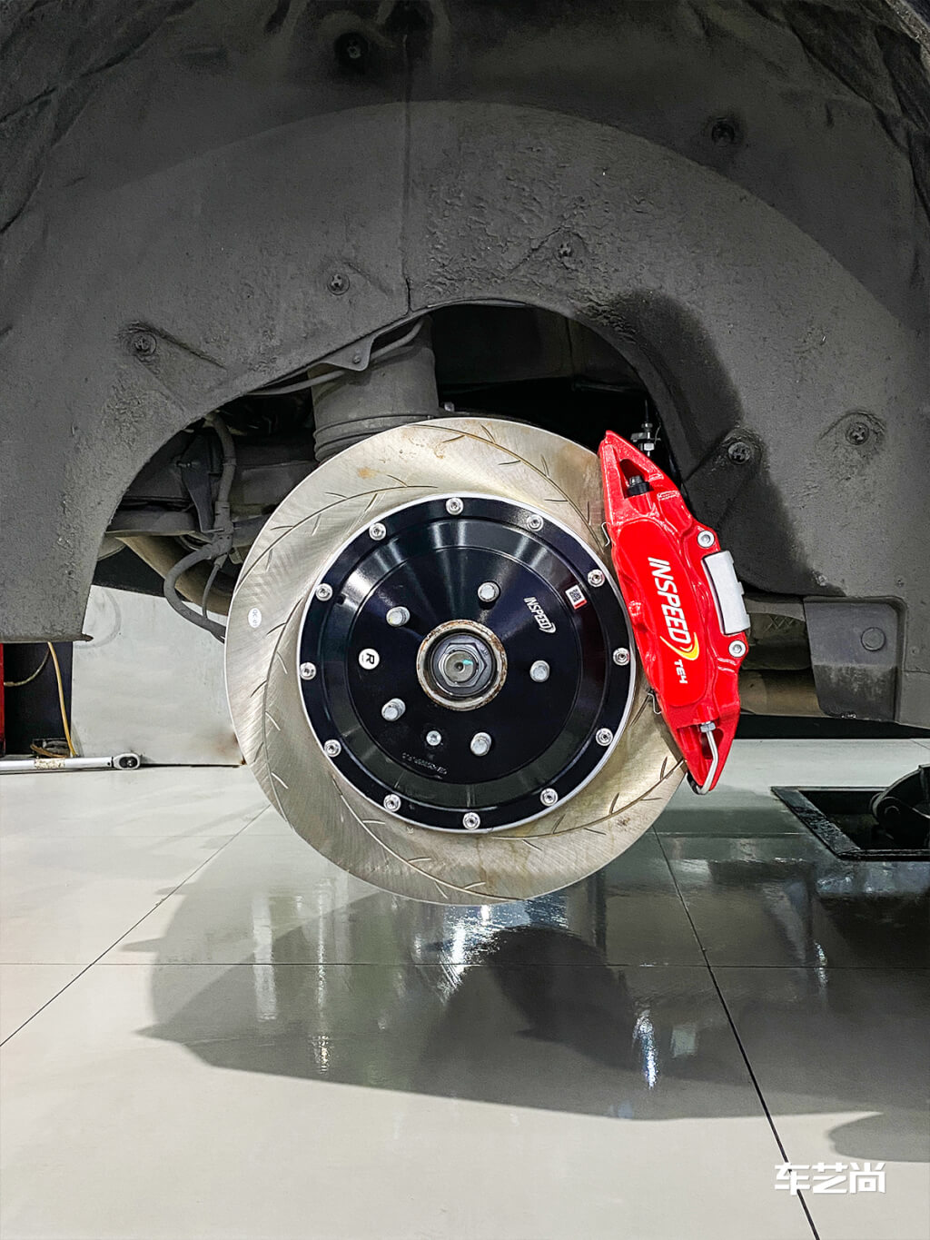 安装已经接近尾声了,大盘+红色卡钳,满满的力量感。