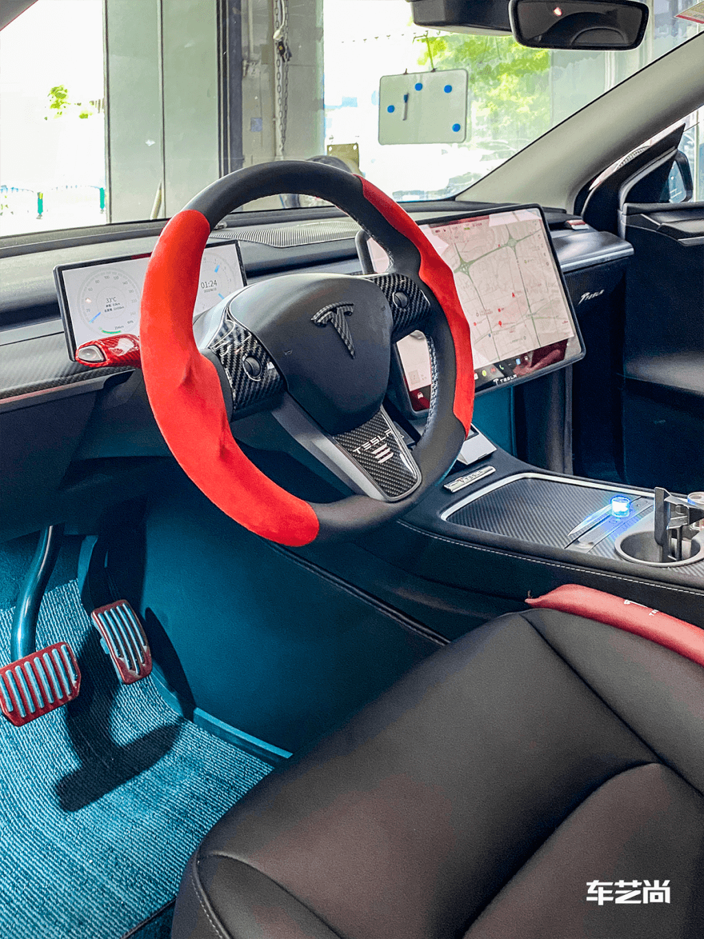 其实,特斯拉除了能改仪表大屏之外,比如:电动前备箱、YOKE方向盘、屏幕旋转支架、炫彩电动门拉手、电吸门、电动遮阳帘、氛围灯、运动包围、一体式尾灯等等,都是热门改装项目。