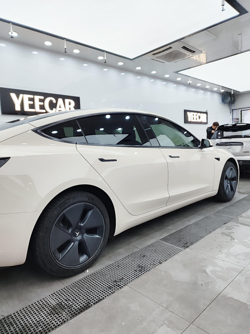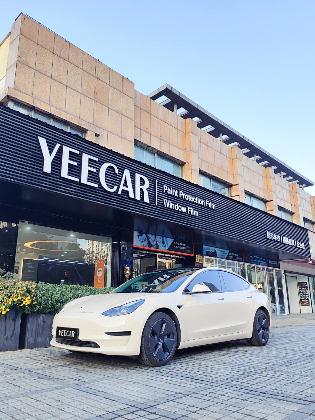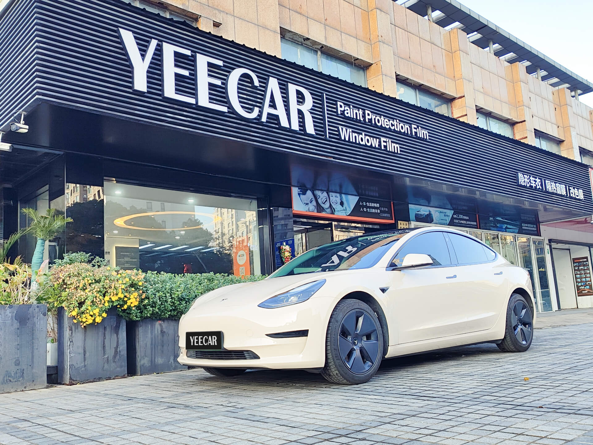 特斯拉3装贴YEECAR撒哈拉沙漠黄改色膜,色泽温润如琥珀、就好像一勺光亮浓稠的蜂蜜、能让淡淡无味的白水瞬间变得醇香甘甜,美得让人都念念不忘,在不经意间治愈我们的内心。