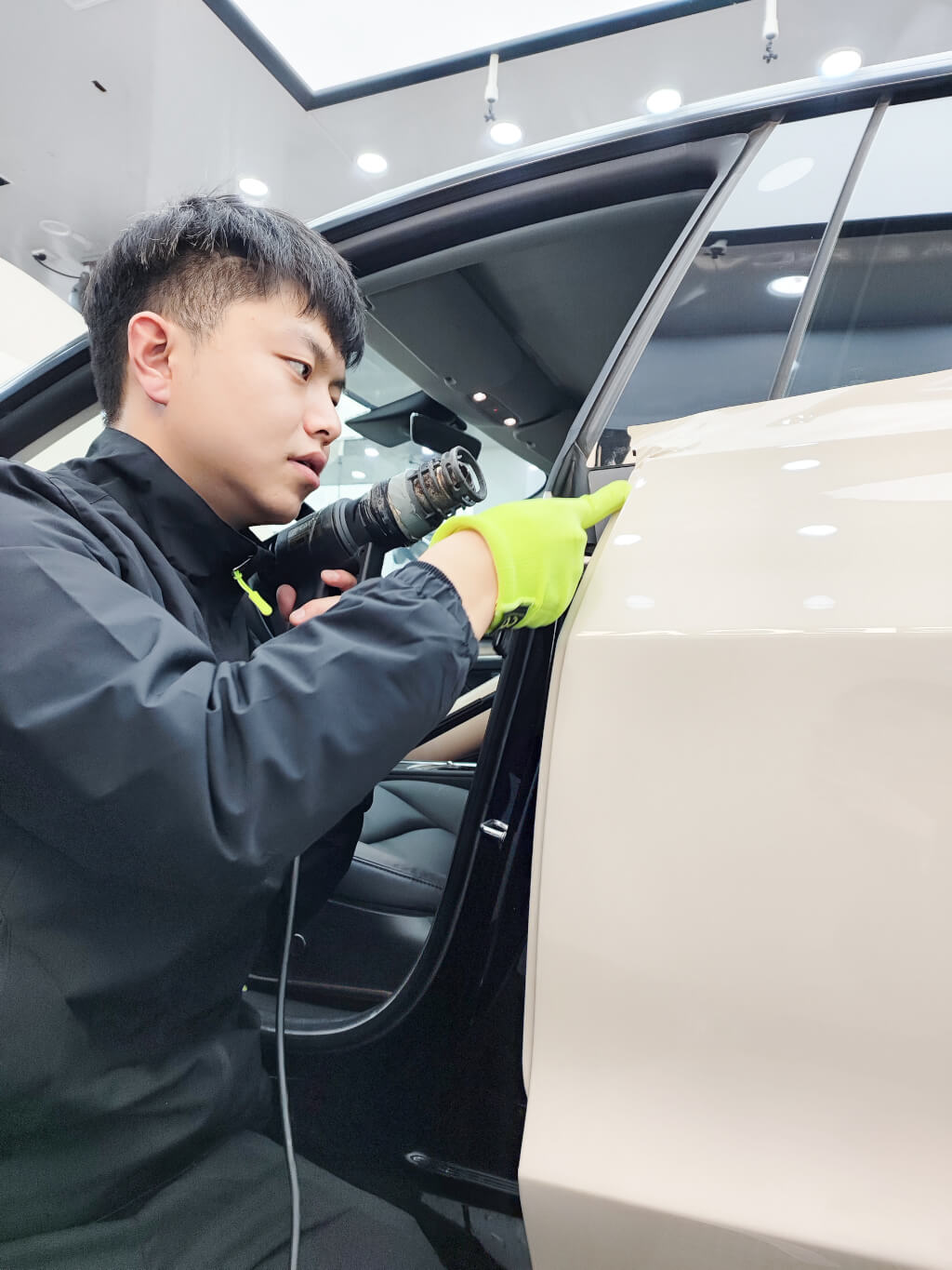 YEECAR御水旗舰店的所有施工技师均由YEECAR总部统一派遣,并经过严格培训,通过考核后方能上岗。在这里为爱车贴膜,您无需担心爱车成为实验品。每位技师都拥有丰富的经验,处理过上千台车辆,掌握精准手法与精湛技艺,让您倍感安心。