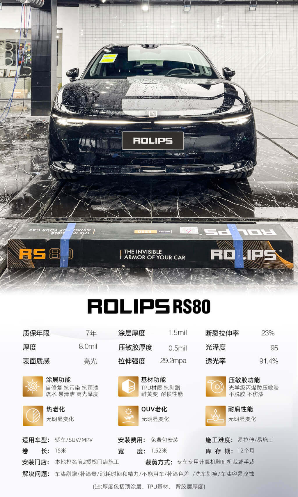 施工型号:施工ROLIPS罗利普斯RS80隐形车衣
