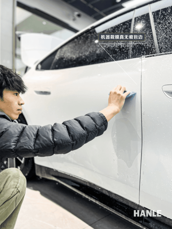 汉乐 HL05 隐形车衣宛如给爱车披上一层坚固的 “铠甲”。其采用先进的 TPU 材质,具备超强的韧性,能有效抵御石子撞击,即便遭遇轻微刮擦,凭借出色的自动修复功能,车衣表面的细微划痕也能迅速消失,让爱车始终如新。而且,HL05 隐形车衣具有极高的透明度,装贴后几乎隐形,不仅完美保留白色小米 SU7 的原有色泽,还能提升漆面亮度,使其更显夺目。