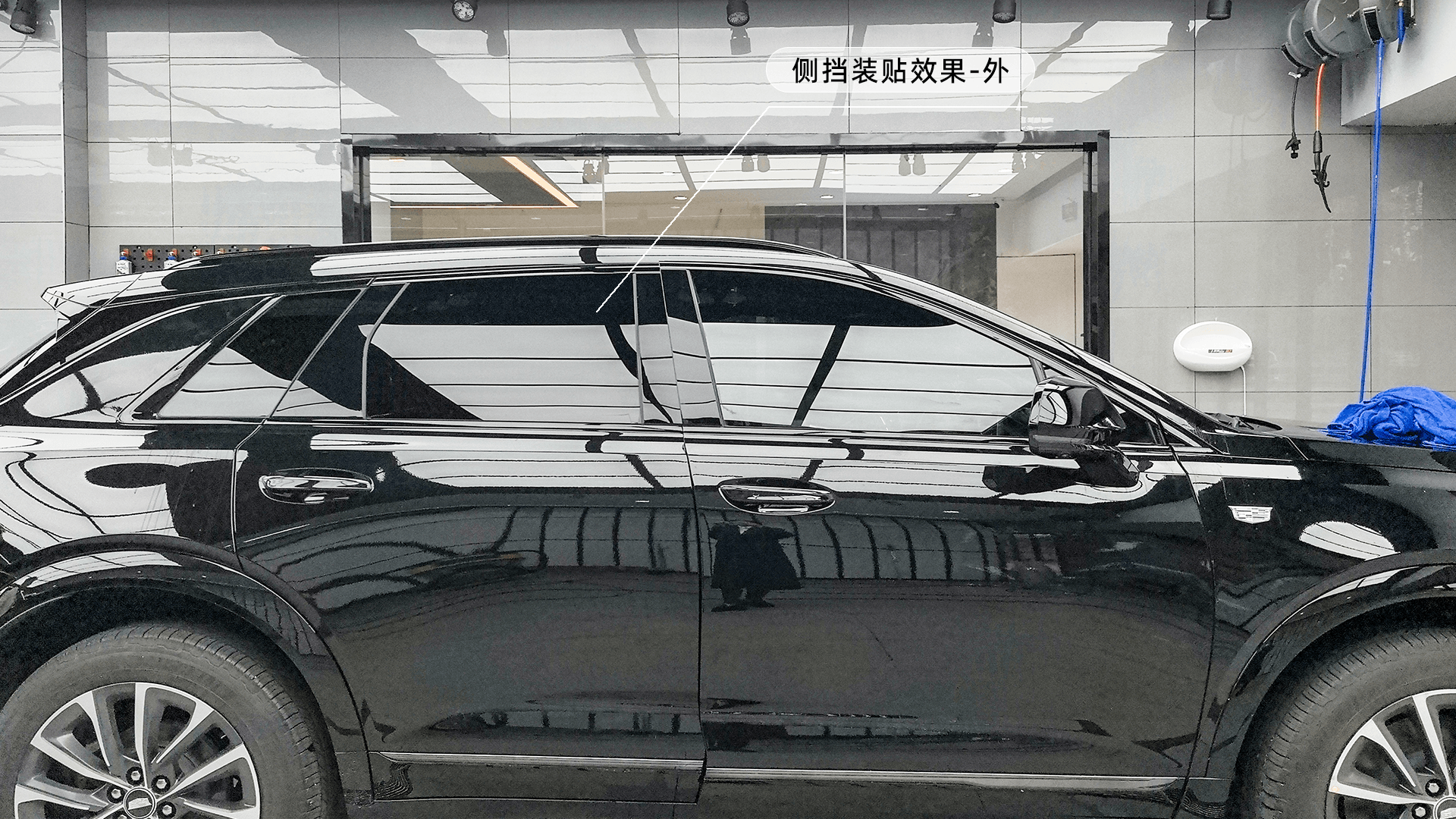 龙膜畅悦80前挡膜以79%的透光率致敬凯迪拉克标志性的全景视野,纳米陶瓷粒子多层溅射技术确保光学清晰度无损呈现。无论是穿梭于都市霓虹,还是驰骋在海岸公路,驾驶者视线始终如水晶般澄明。侧窗采用畅悦15(透光率20%)与畅悦35(透光率37%)组合,后排深色私密玻璃与B柱后浅色车窗形成渐变光影美学,既为贵宾舱营造剧院级隐私空间,又避免夜间行车视觉压抑感,诠释“隐形守护”的设计哲学。