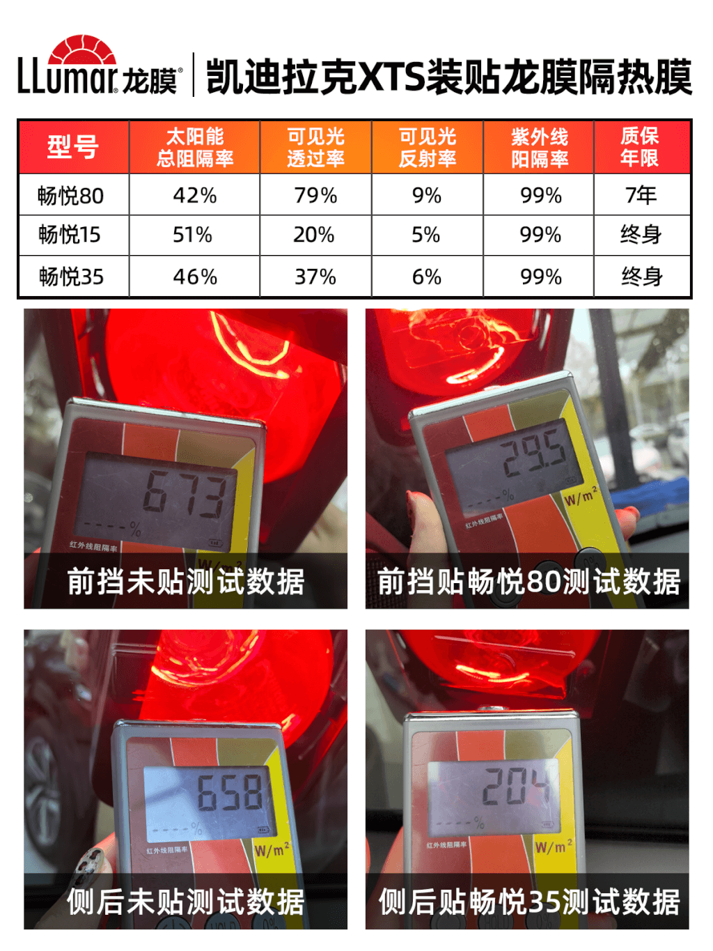 当美式豪华基因与尖端窗膜科技相遇,凯迪拉克XTS在龙膜畅悦80+畅悦15+畅悦35的加持下,将经典格调与智能防护推向全新高度。这套专为豪华轿车定制的光影方案,以科学配比重构车窗的透光、隔热与隐私平衡,让百年造车工艺焕发数字化时代的优雅锋芒。