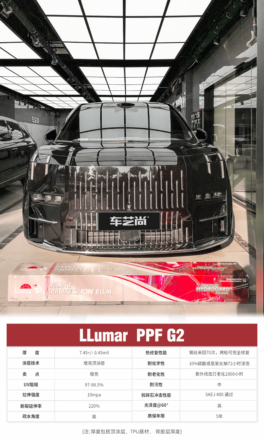 自动修复功能:龙膜G2的专利涂层技术使其具备自动修复划痕的能力,小划痕在阳光下能够迅速消失,让车漆始终保持完美无瑕。