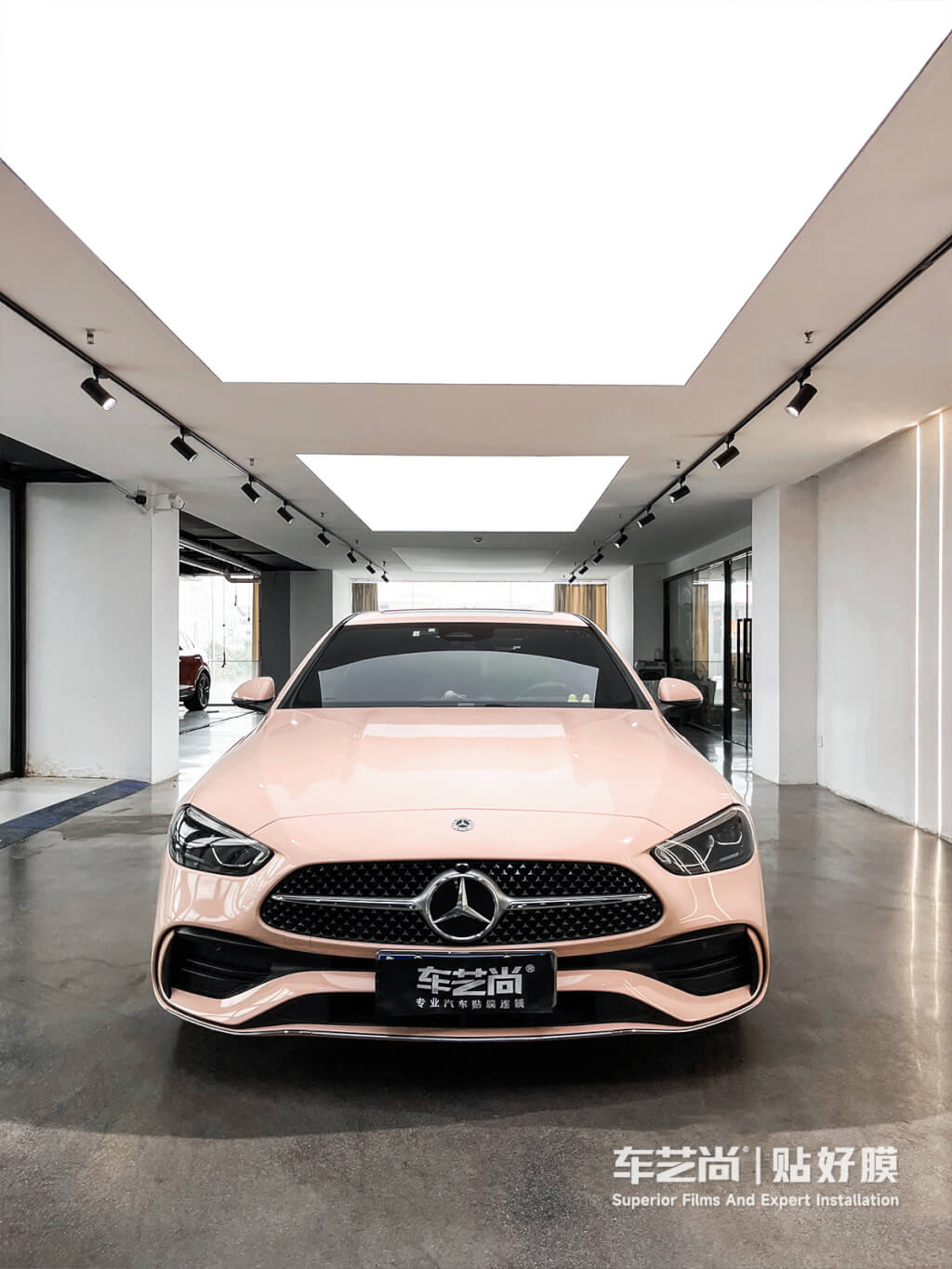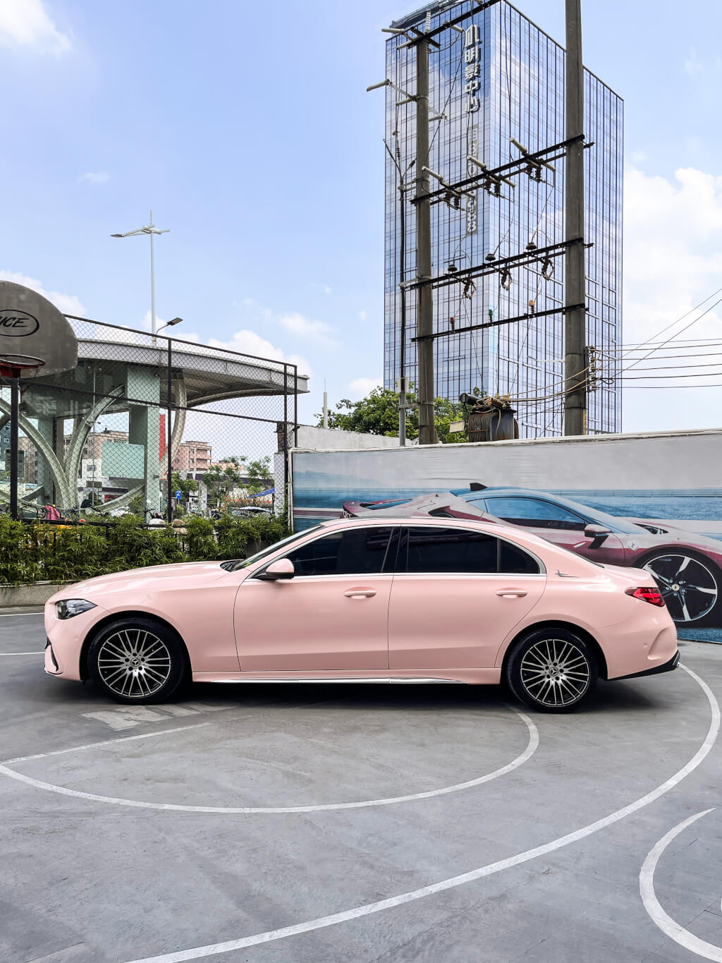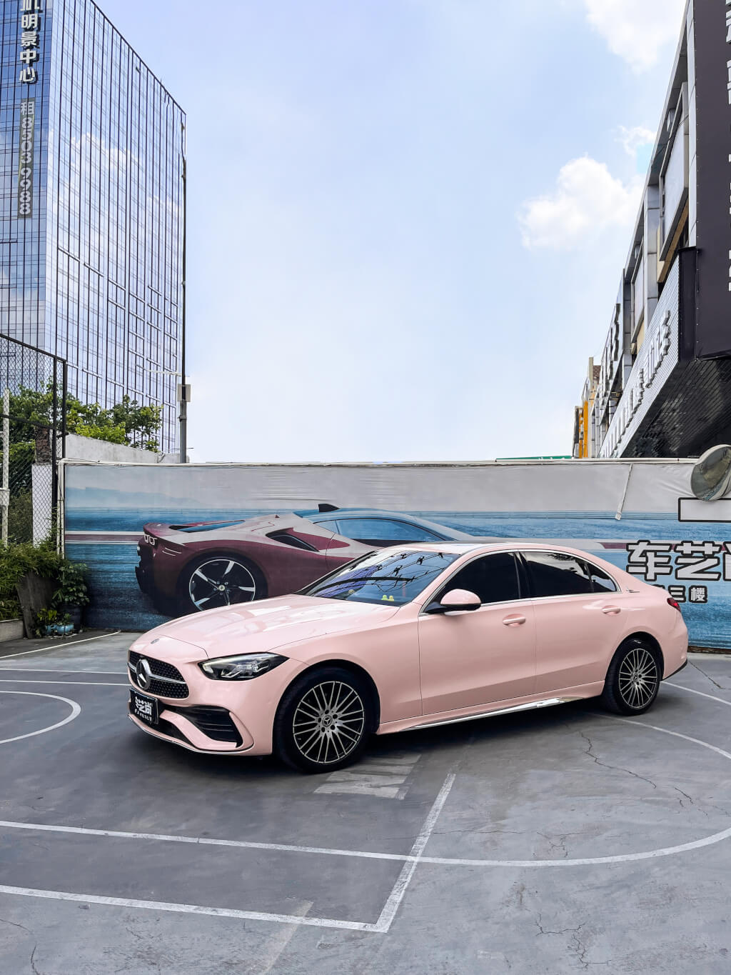 当经典豪华邂逅温柔浪漫,奔驰C级凭借流畅的轿跑线条与精致镀铬饰条,成为30万级豪华轿车的设计标杆。而贝壳粉改色膜以其低饱和度的灰粉色调,既保留了奔驰的优雅基因,又注入清新活力——这种柔和的粉色与车身曲面光影结合,能呈现出珍珠母贝般的莹润质感,尤其适合追求个性又不失品味的年轻车主。